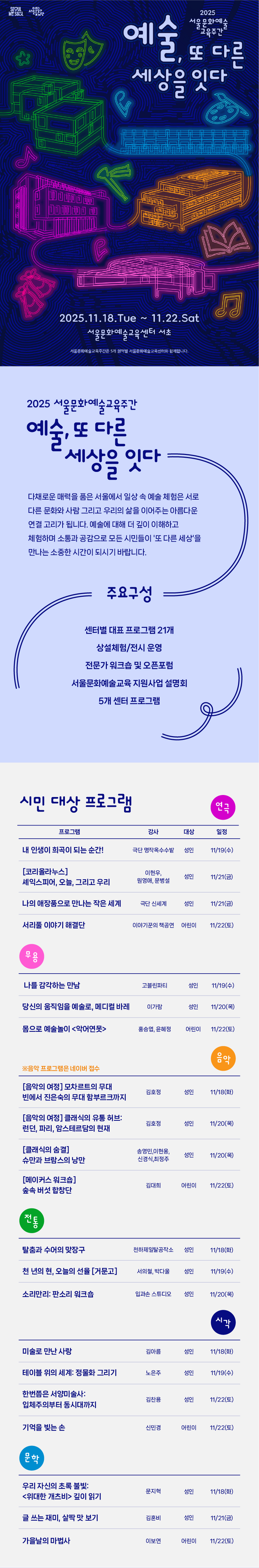 문화예술교육 워크숍 및 포럼 참여자 모집 [2025 서울문화예술교육주간: 예술, 또 다른 세상을 잇다]