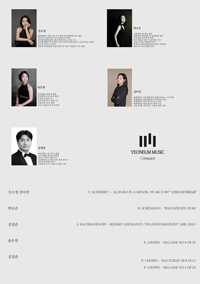 이번 무대는 그 따뜻한 힘을 함께 나누고자 정성으로 준비한 피아노 공연입니다.
