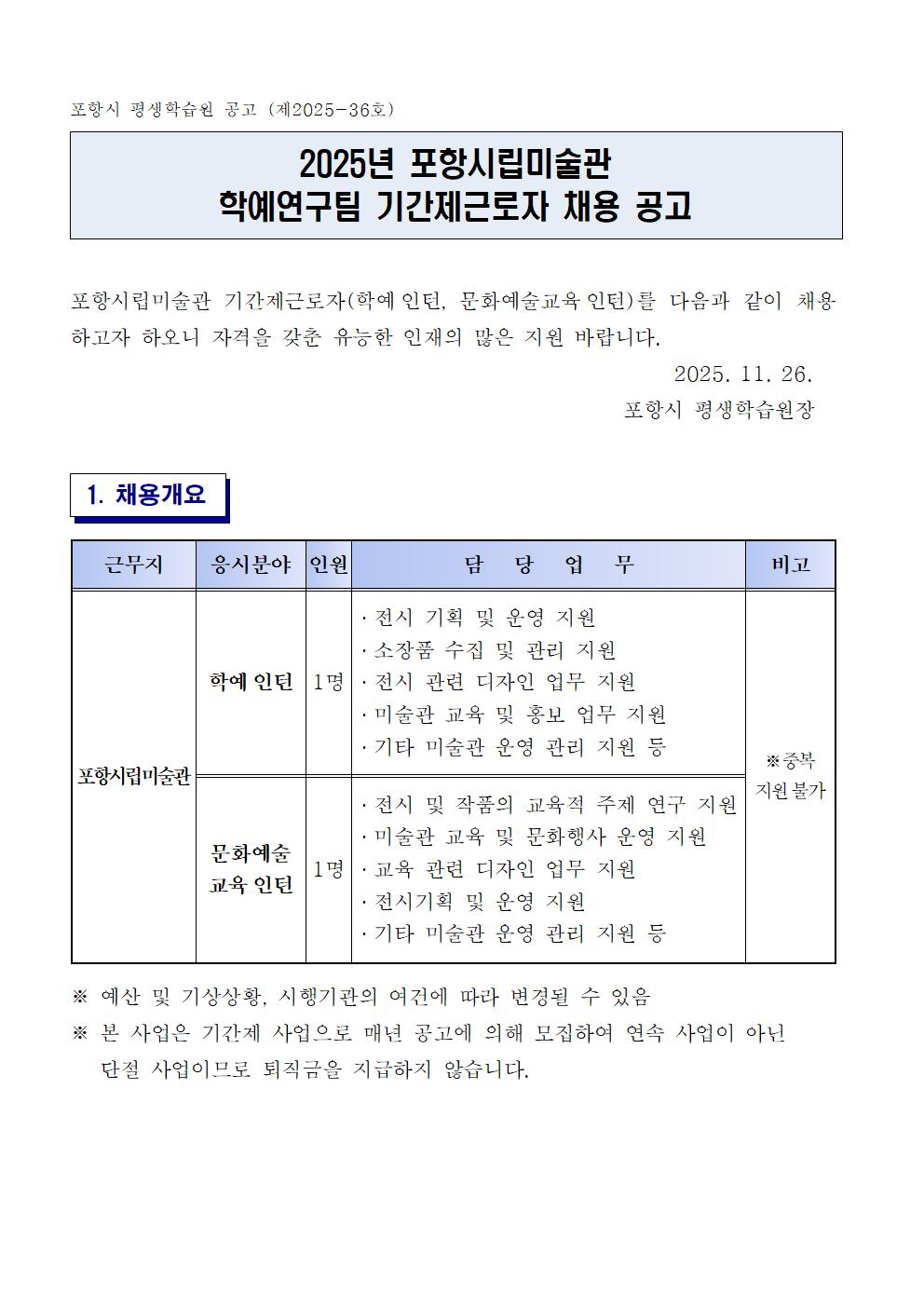 20251201100441_2026년 포항시립미술관 학예연구팀 기간제근로자 채용 공고문.hwp