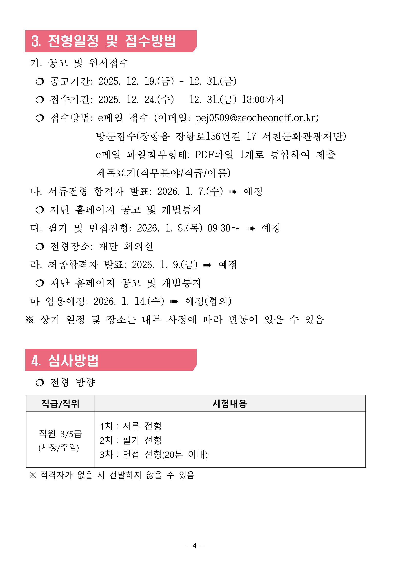 [(재)서천문화관광재단] 2026년 제1차 직원채용 공고
