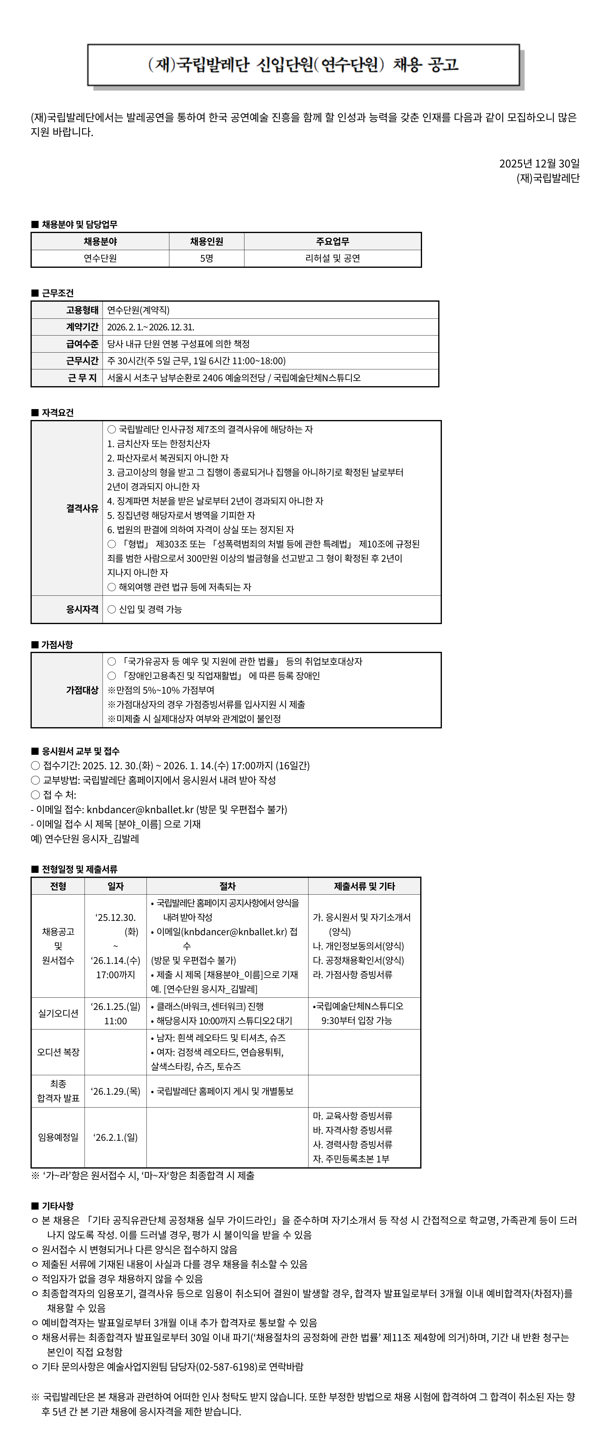 20251231125818_3. 국립발레단 신입단원(연수단원) 채용 제출서류.hwp
