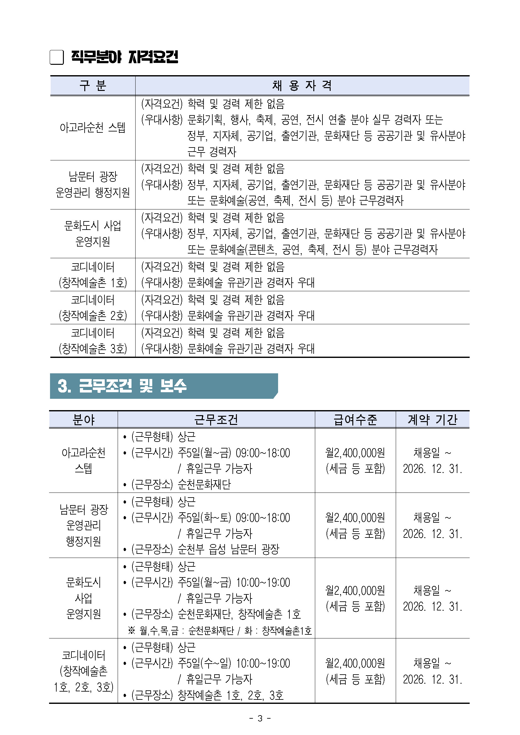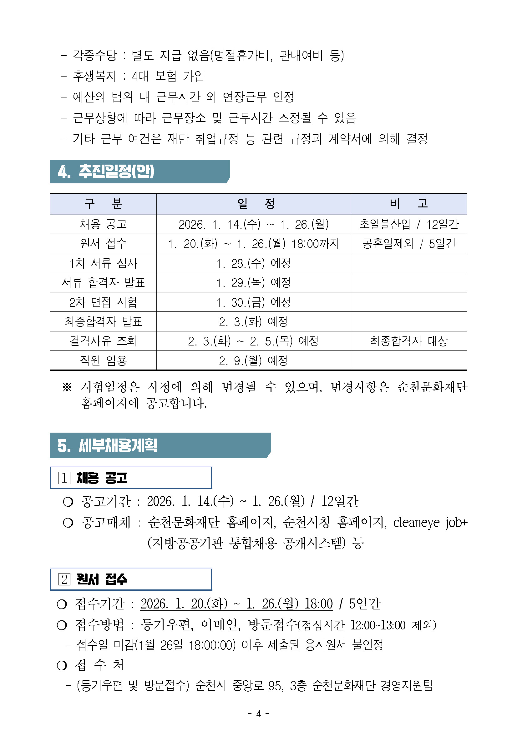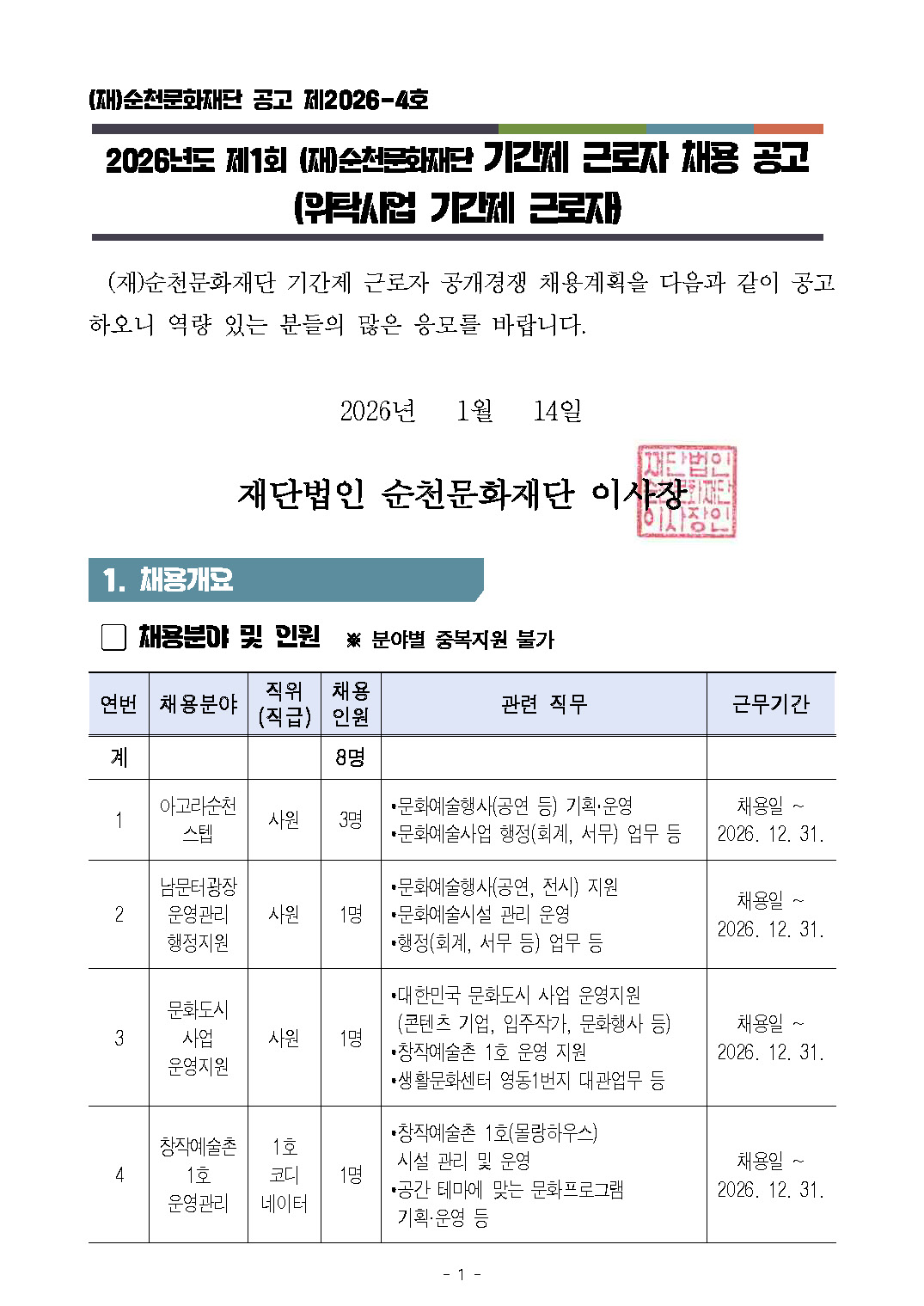 2026년 제1회 (재)순천문화재단 기간제 근로자 채용 공고