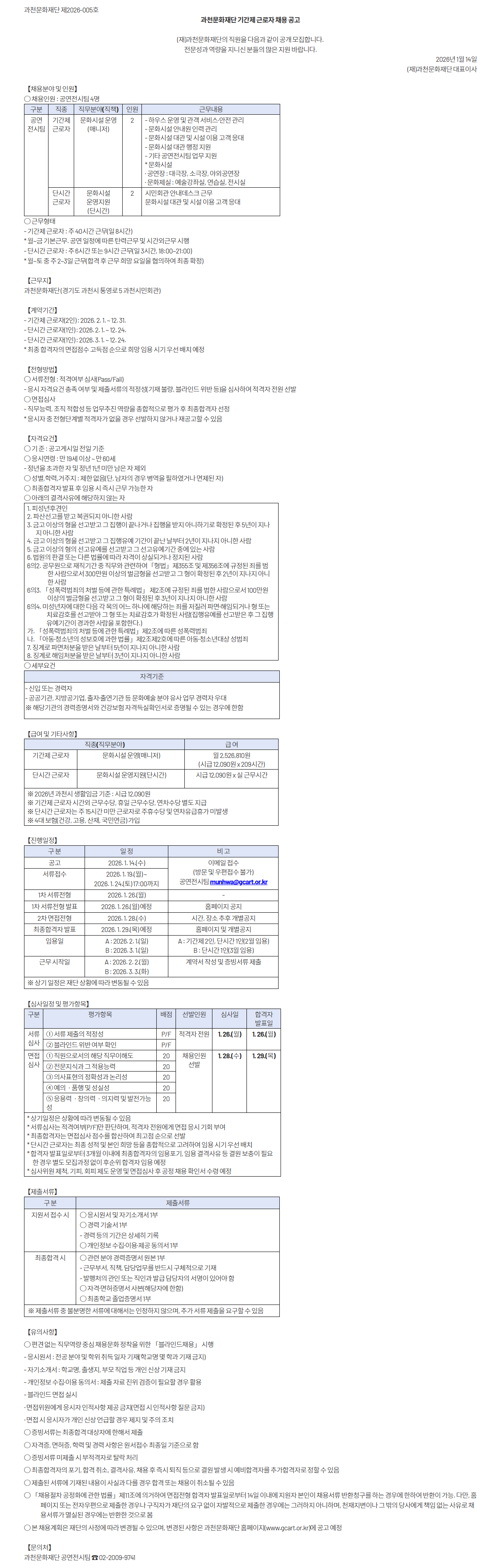 2026년 과천문화재단 기간제·단시간 근로자 채용 공고(문화시설 운영)