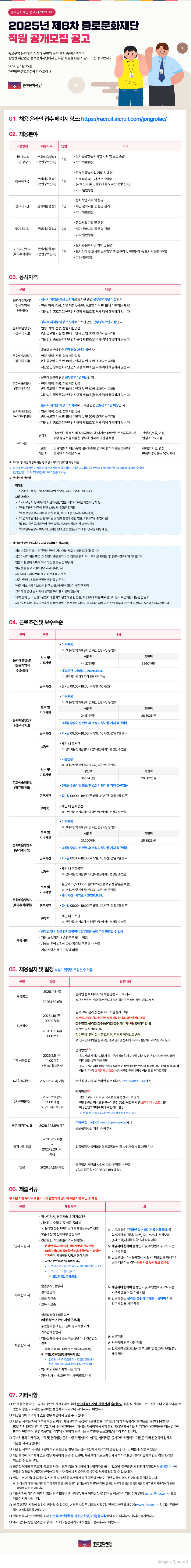 2025년 제8차 종로문화재단 직원 공개모집 공고