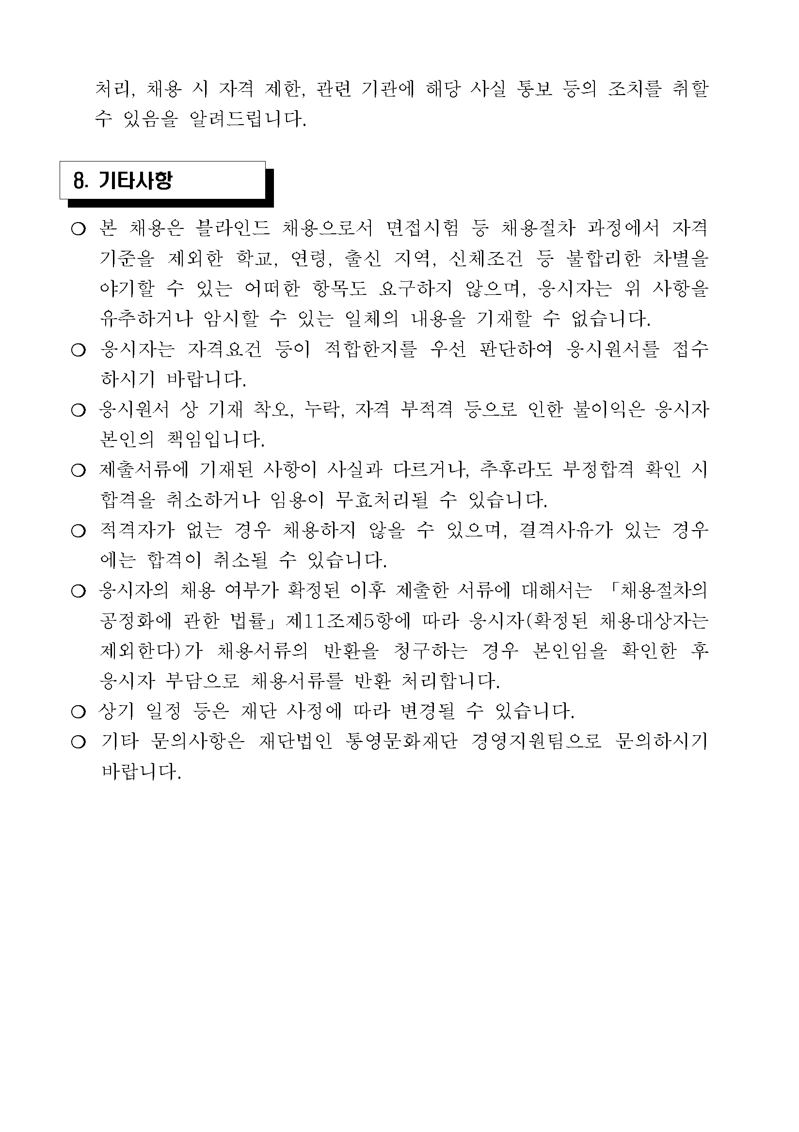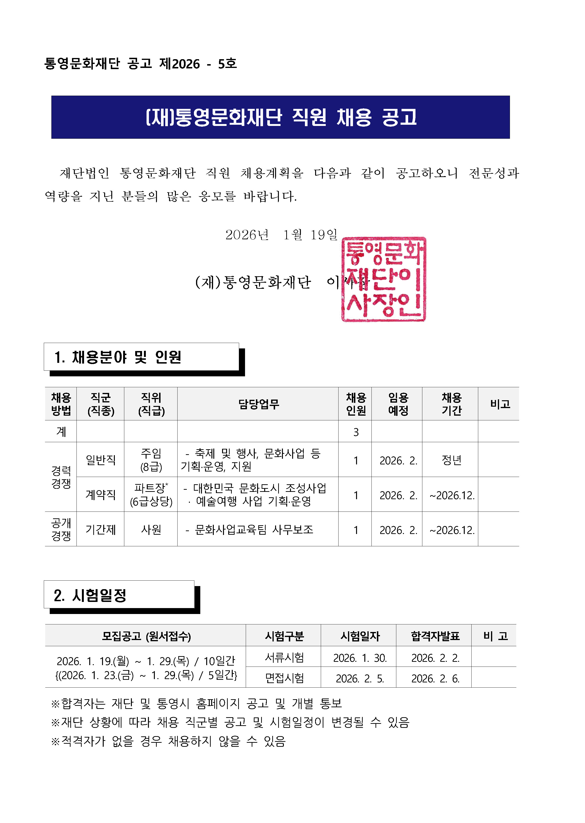 [(재)통영문화재단] 2026년 직원 채용 공고