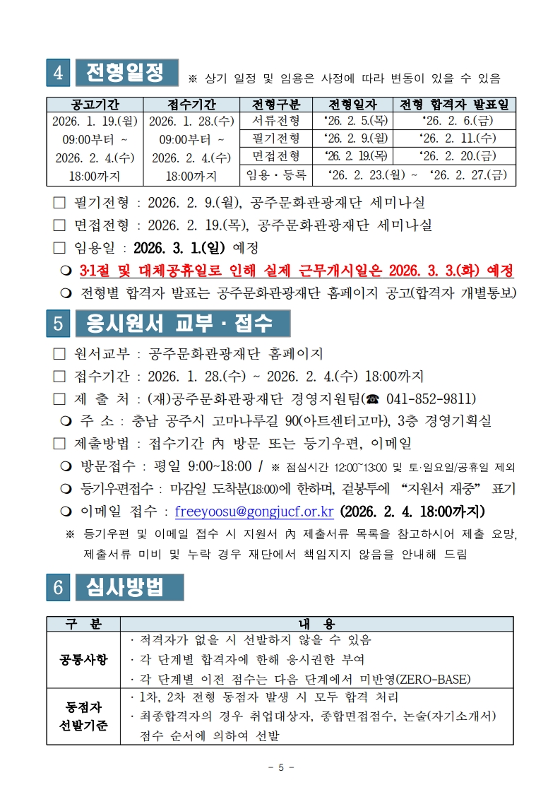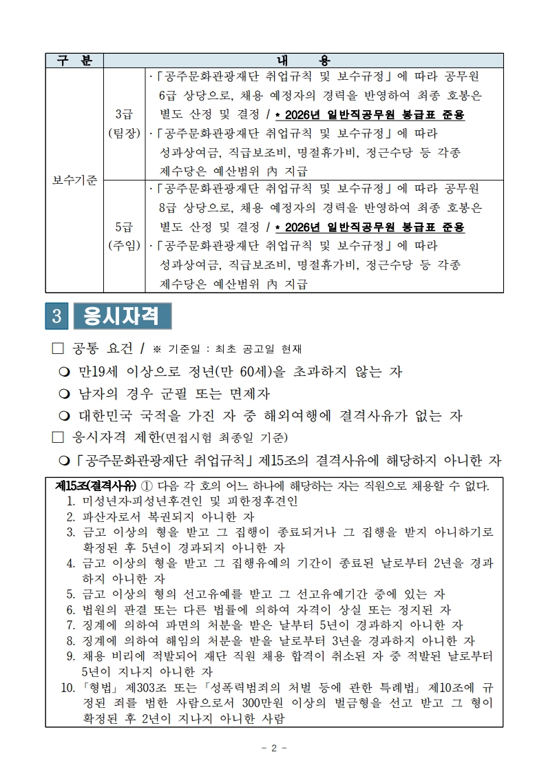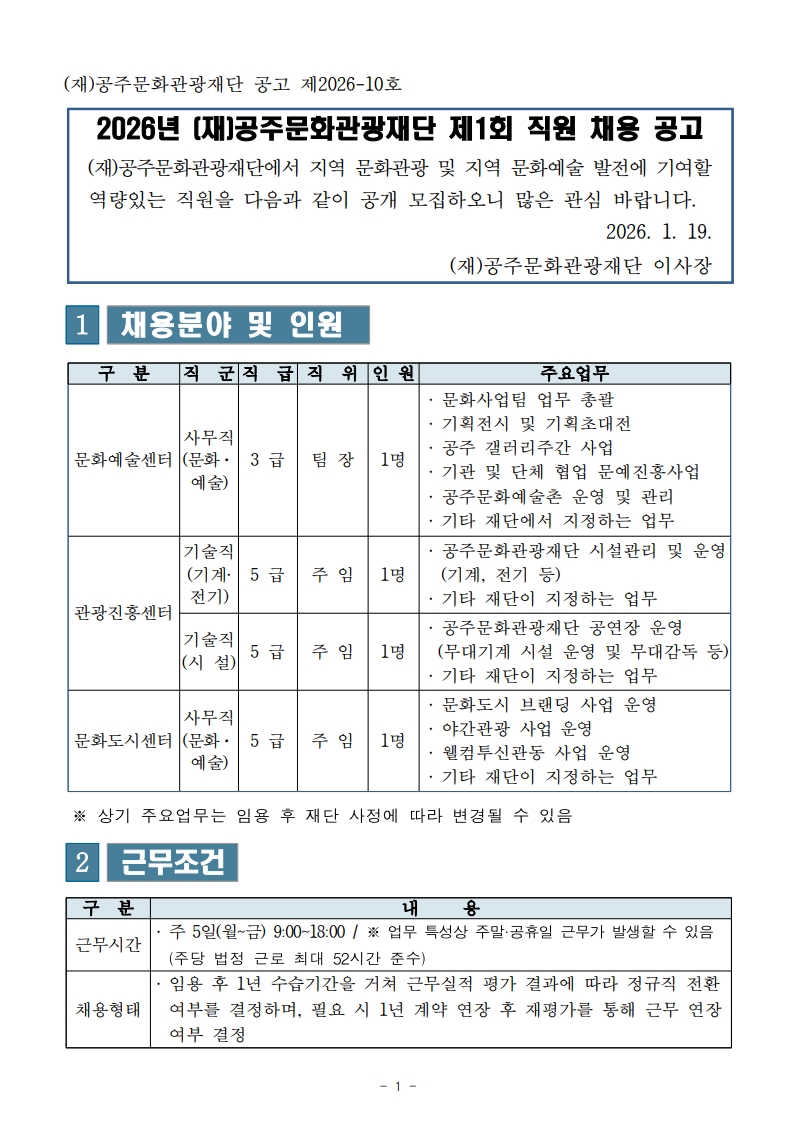 [(재)공주문화관광재단] 2026년 제1회 직원 채용 공고