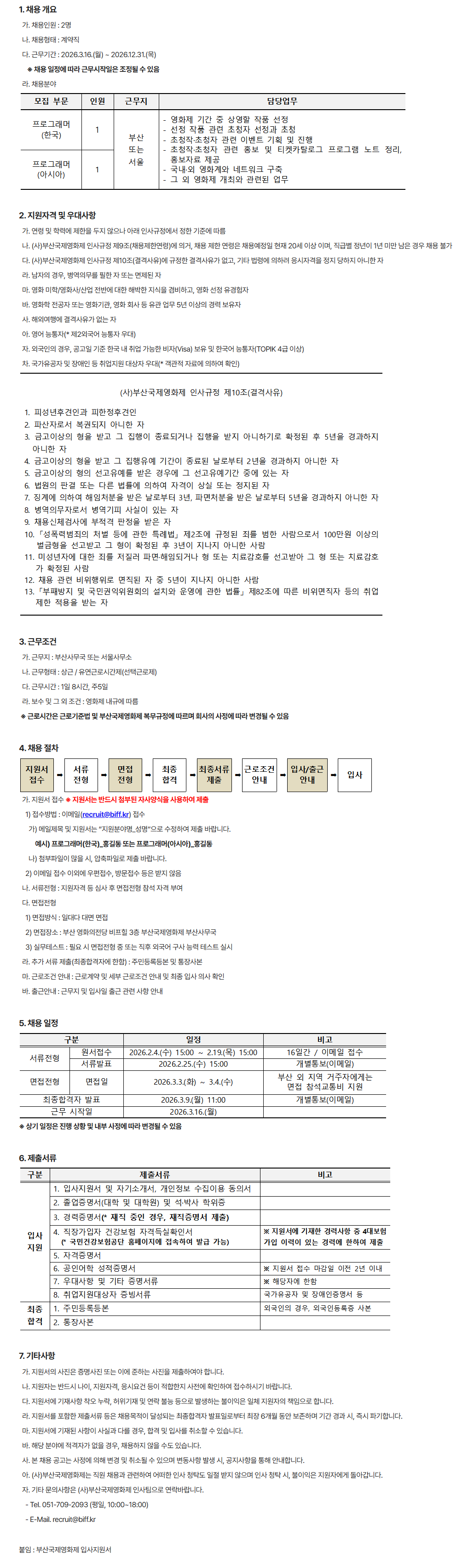 2026년 부산국제영화제 프로그래머(계약직) 채용