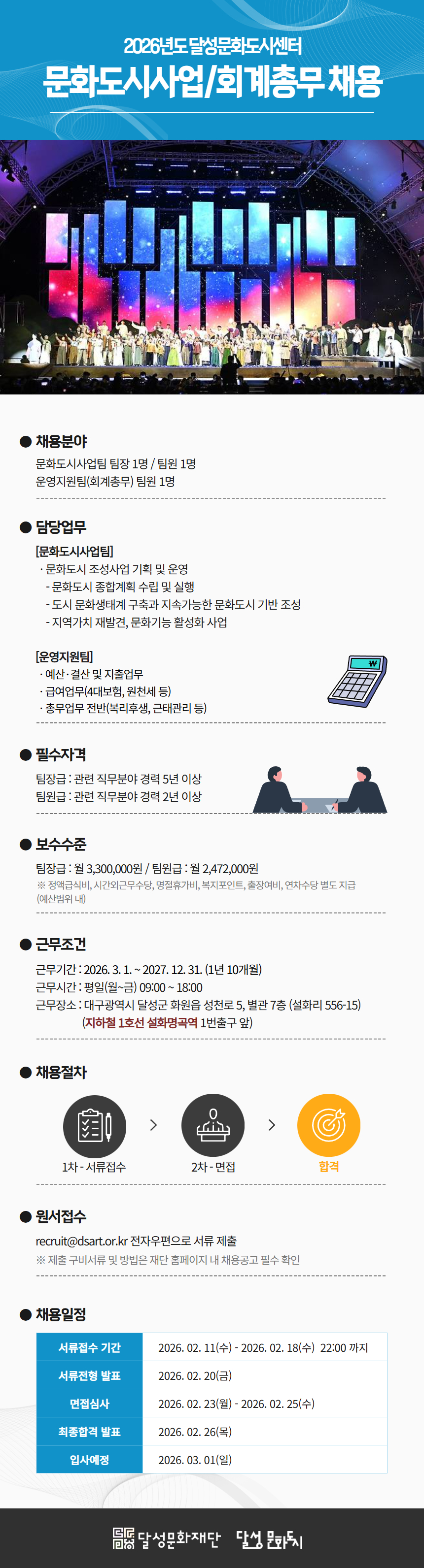 달성문화도시센터 문화도시사업팀장, 팀원 및 회계총무 팀원 채용공고