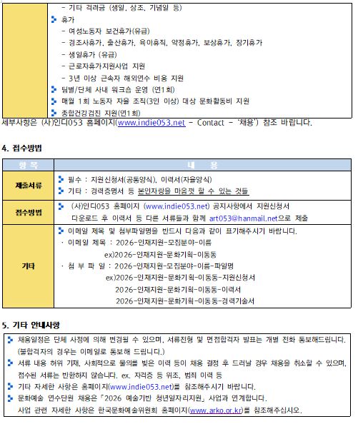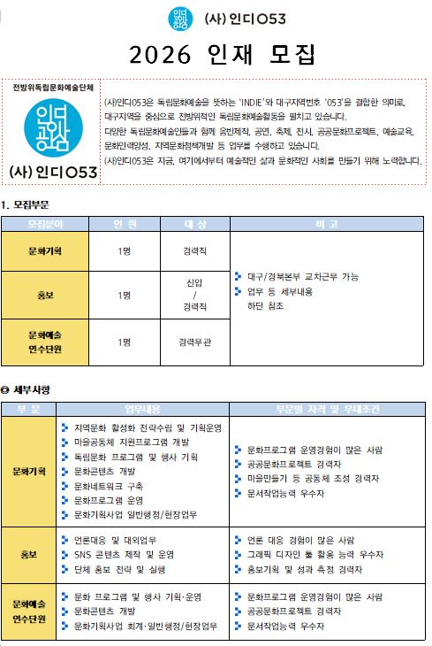 [회원등록공고] [사단법인 인디053] 문화기획 / 홍보 / 문화예술 연수단원 인재모집