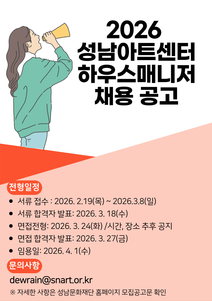 2026 성남아트센터 하우스매니저(기간제근로자) 채용 공고