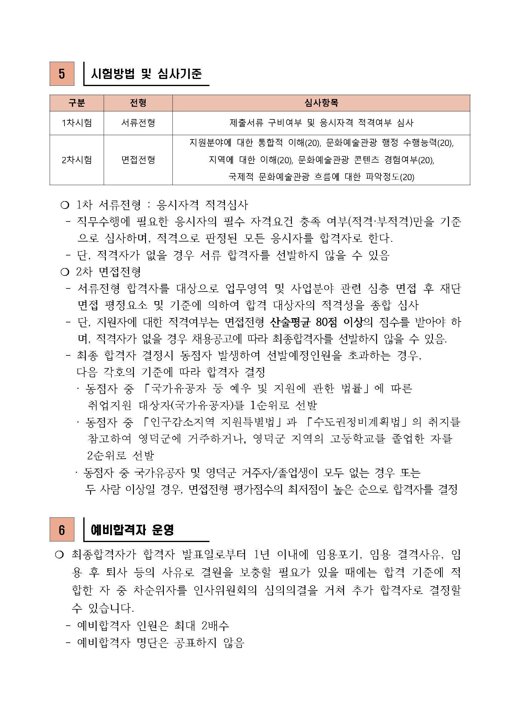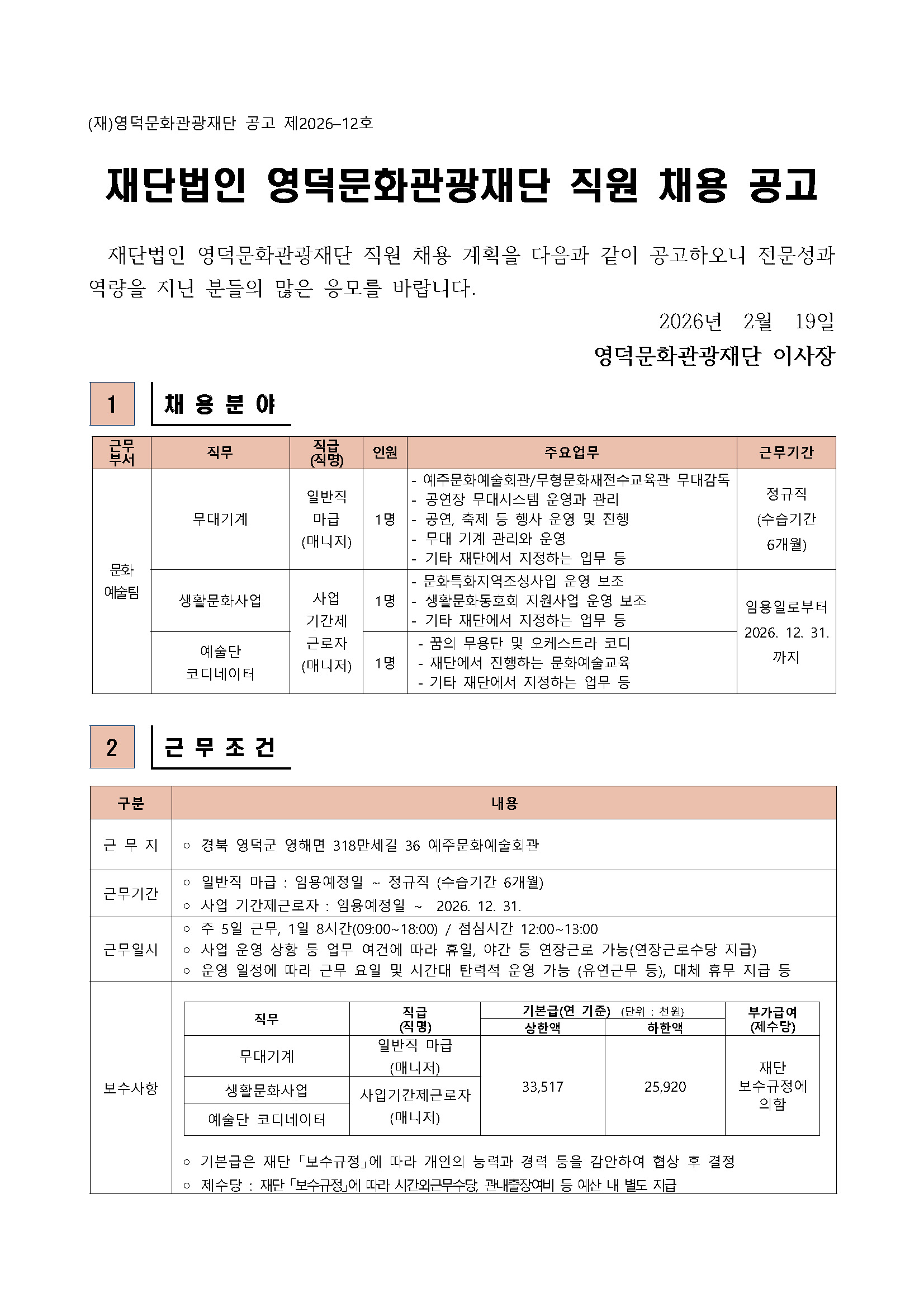 재단법인 영덕문화관광재단 2026년 제2차 직원 채용 재공고