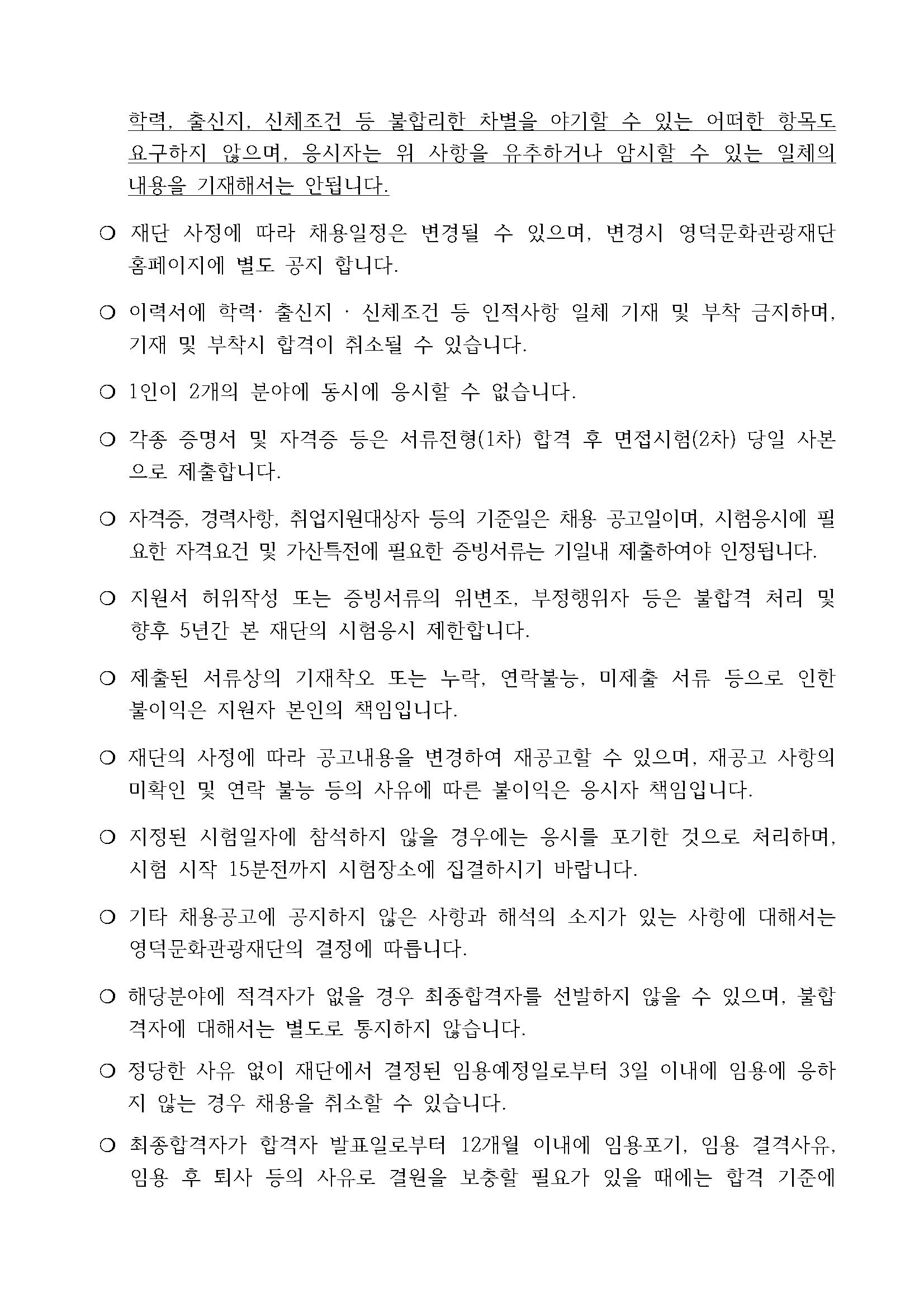 2026년 재단법인 영덕문화관광재단 제3차 직원 채용 공고