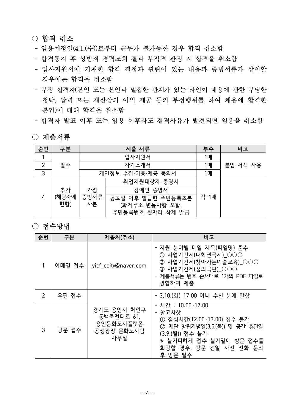 2026년 (재)용인문화재단 사업기간제 근로자 채용 공고