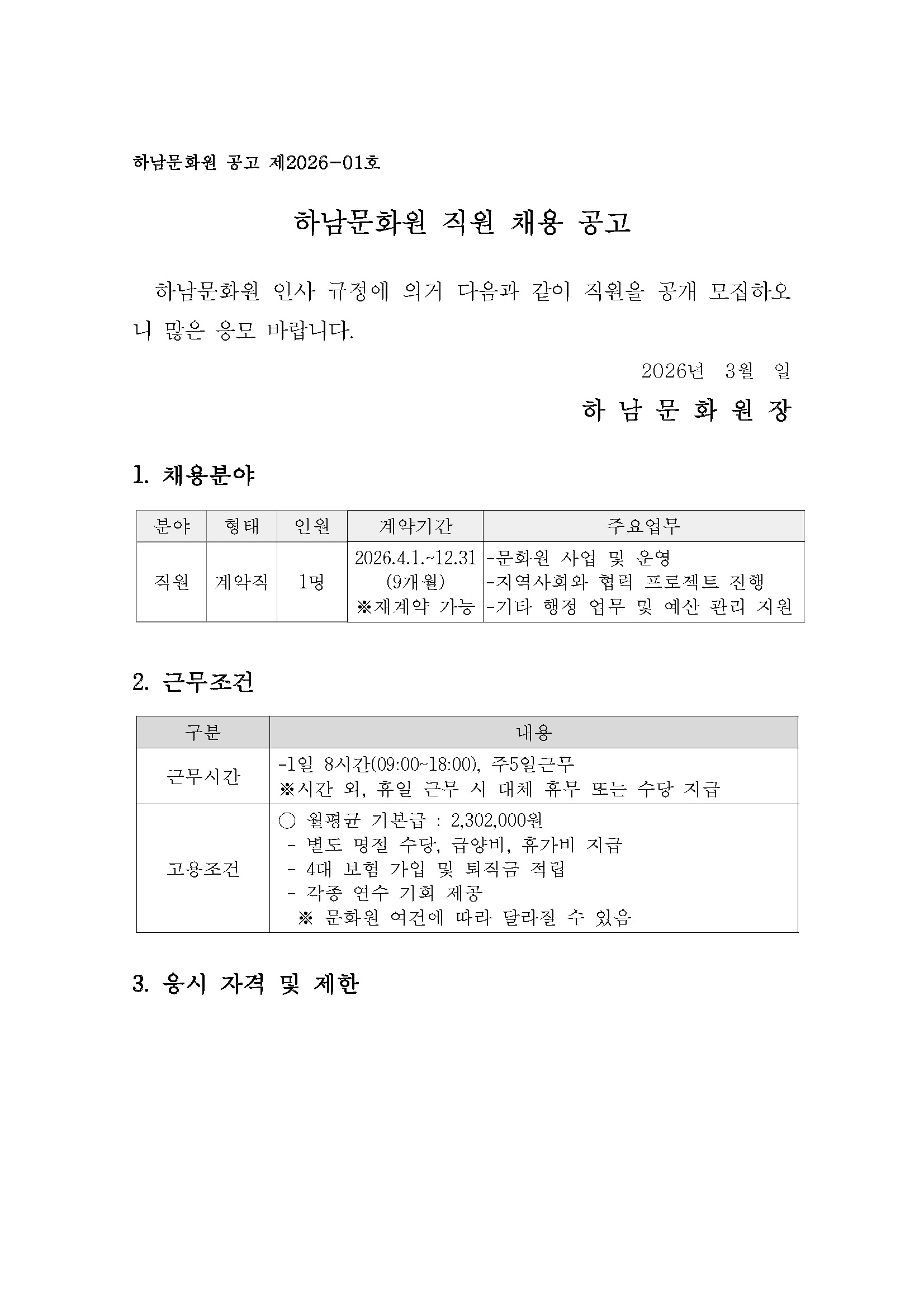2026년 제3회 기간제근로자 공개채용 공고