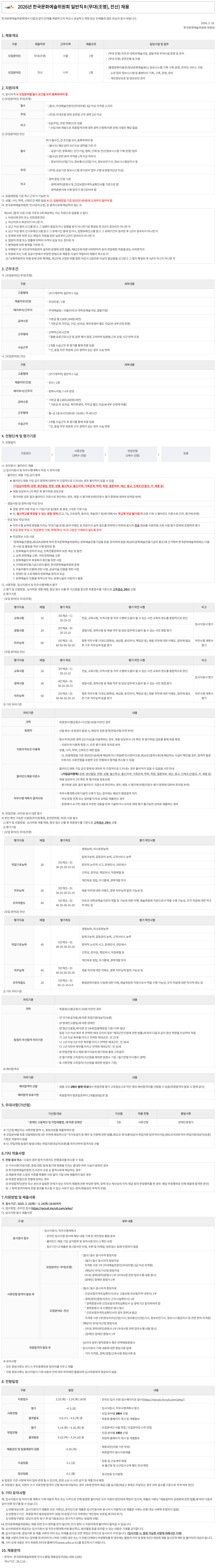 2026년 한국문화예술위원회 일반직Ⅱ(무대(조명)) 채용