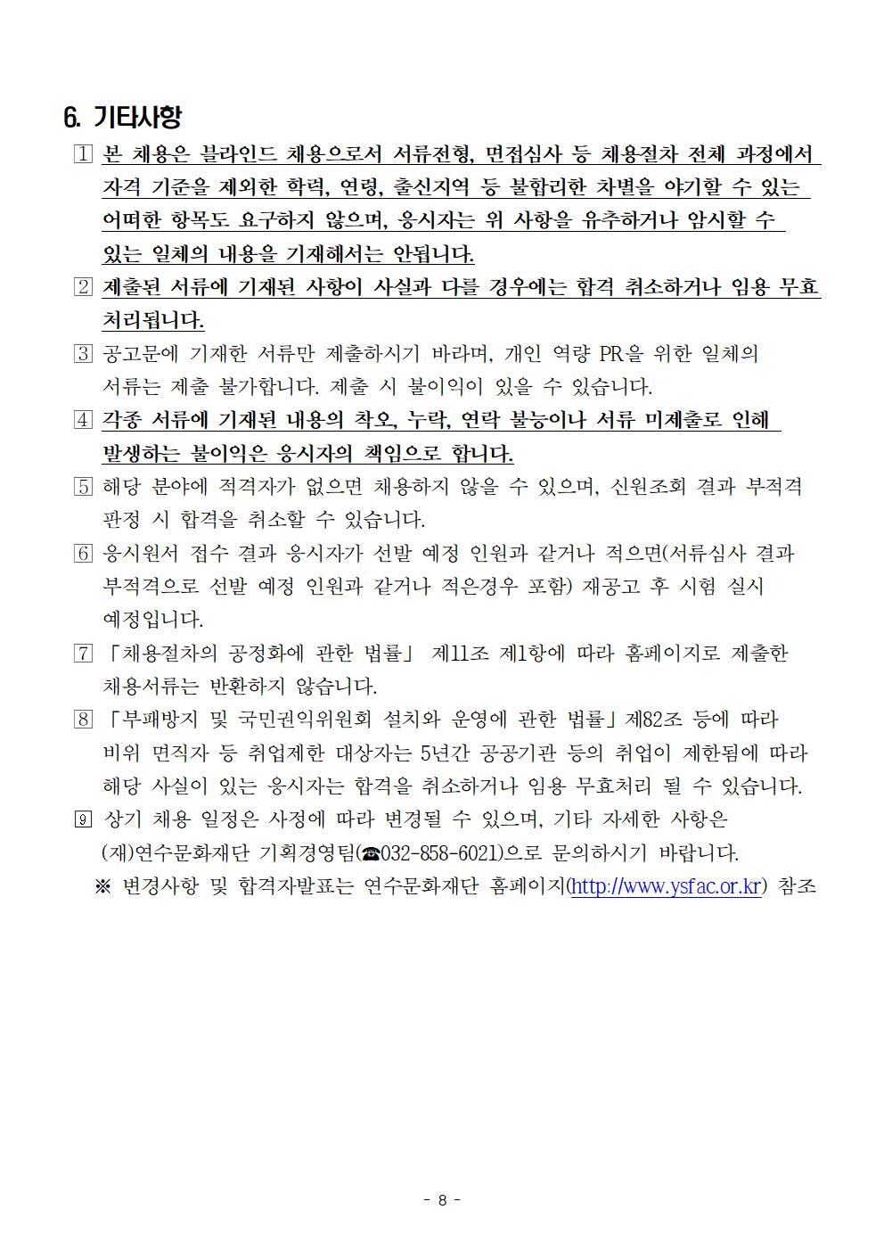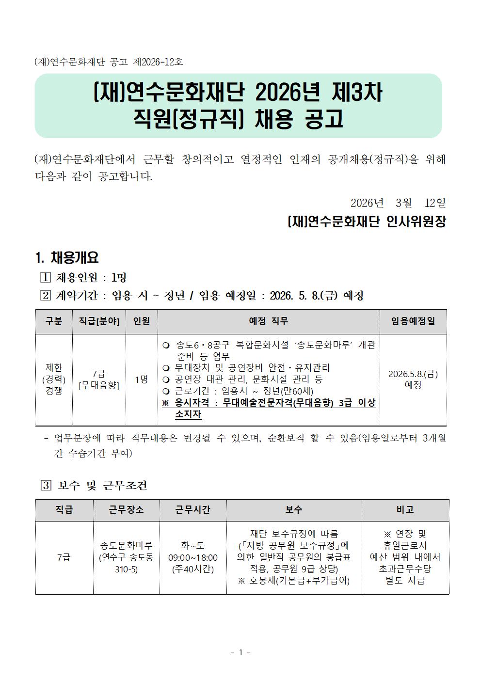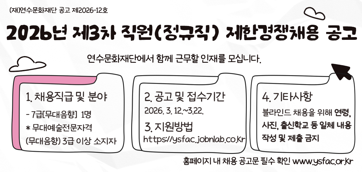 (재)연수문화재단 2026년 제3차 직원(정규직) 채용 공고
