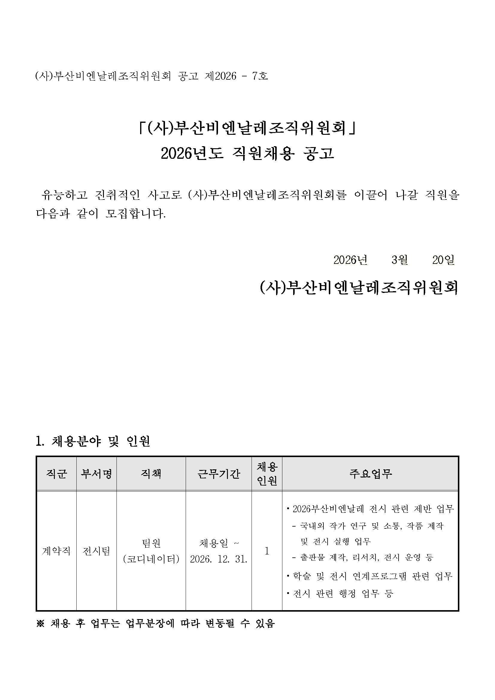 (사)부산비엔날레조직위원회 직원 채용 공고 [홍보마케팅팀]
