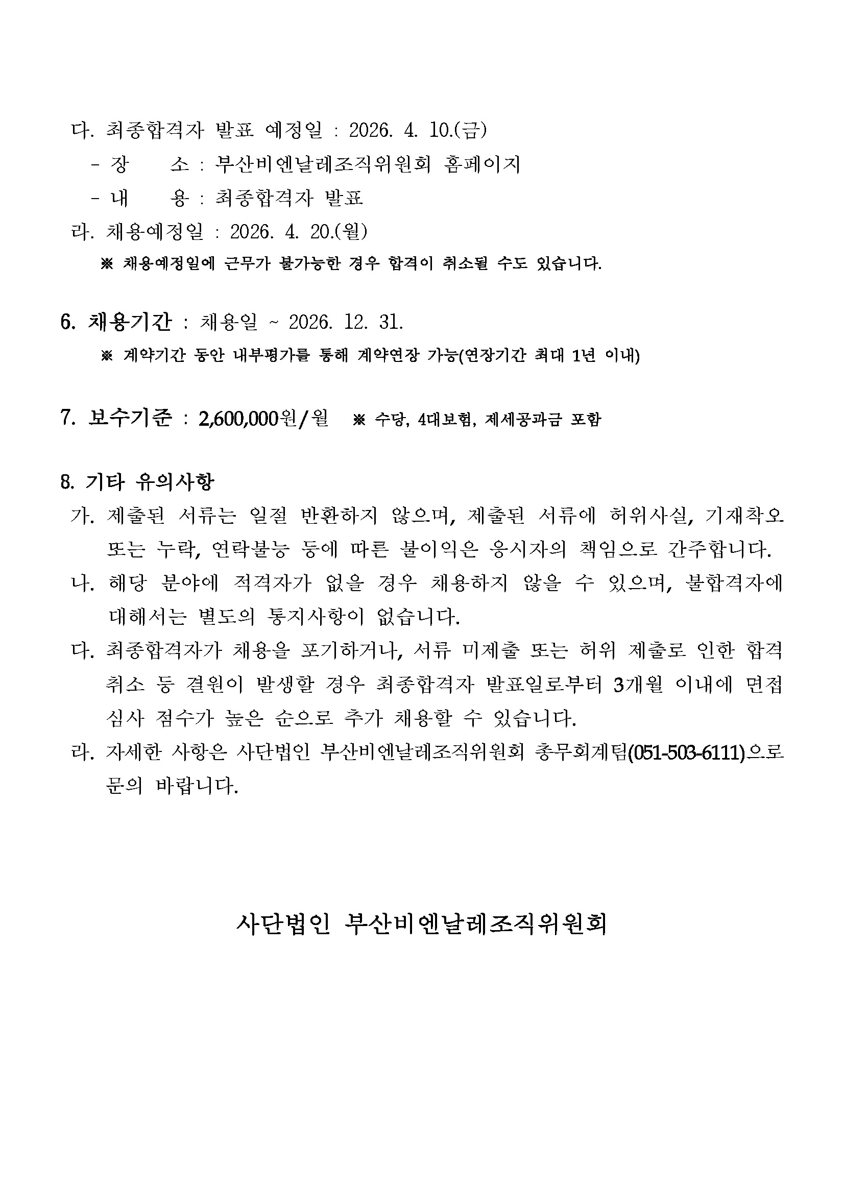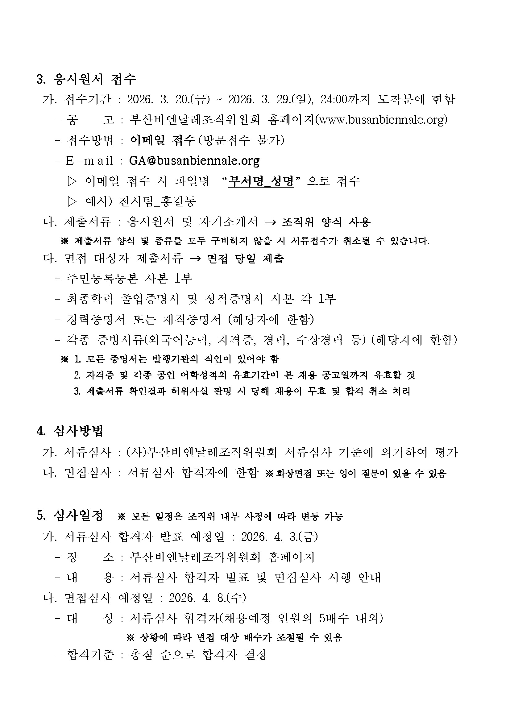 (사)부산비엔날레조직위원회 직원 채용 공고