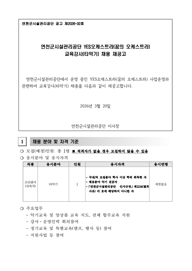 20260323102821_연천군시설관리공단 YES오케스트라(꿈의 오케스트라) 교육강사(타악기) 채용 재공고.pdf