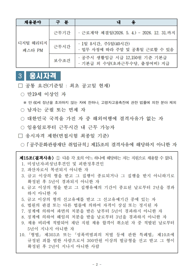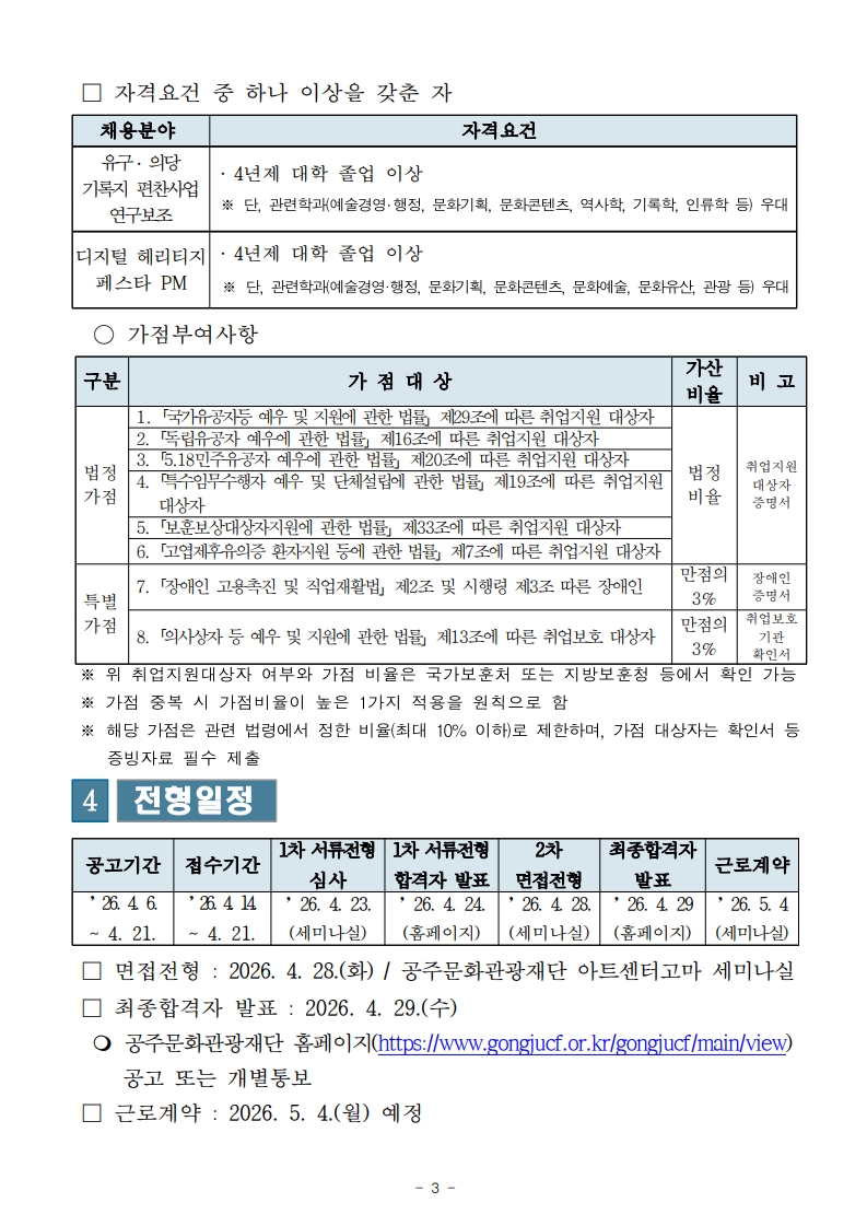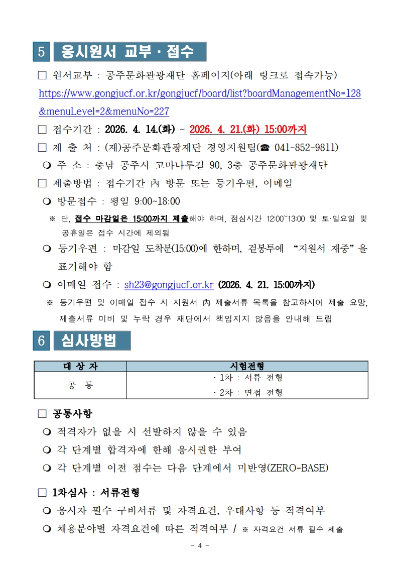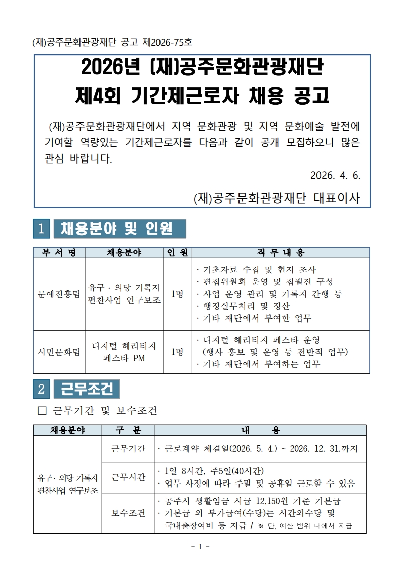 [(재)공주문화관광재단] 2026년 제4회 기간제근로자 채용 공고