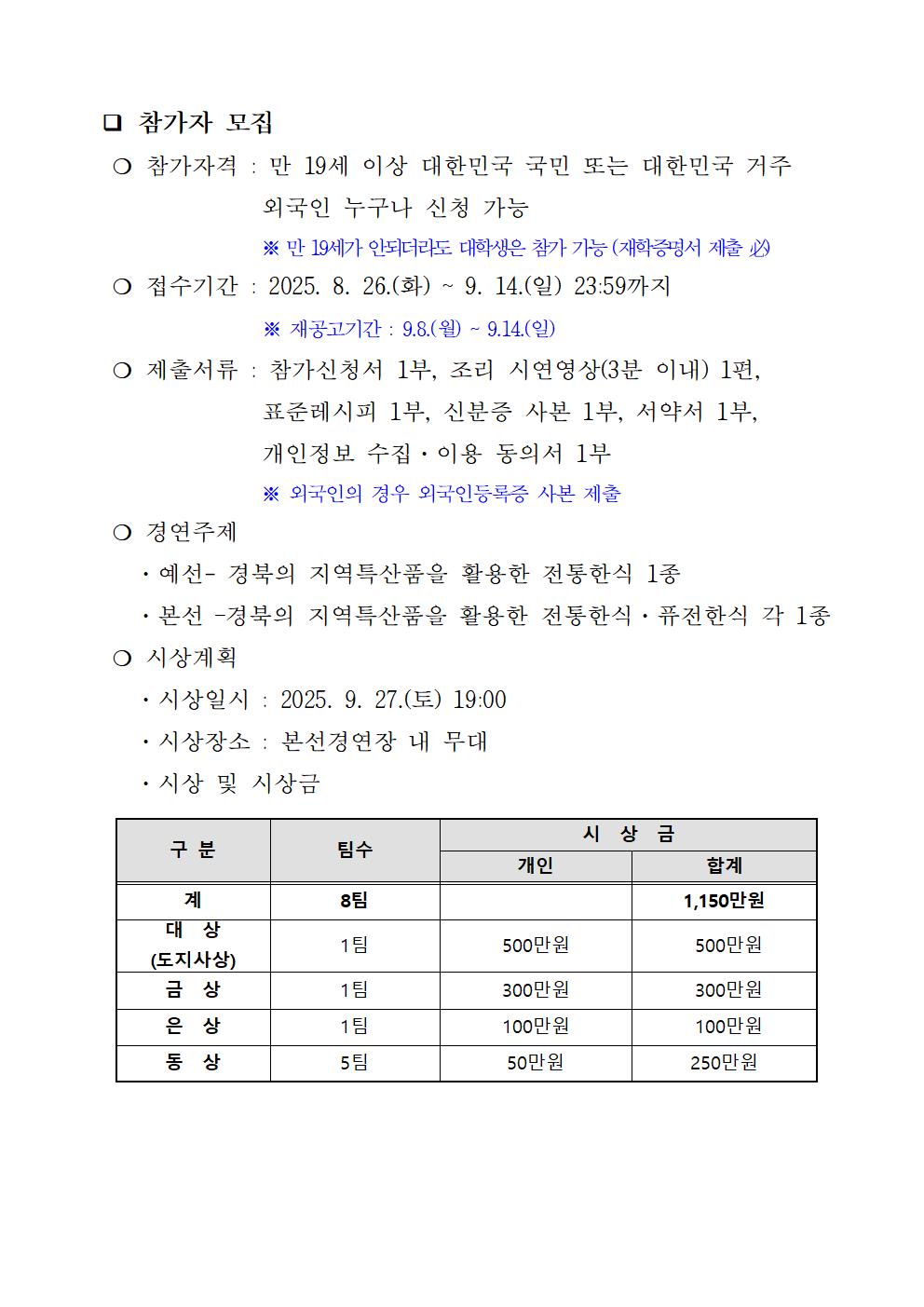 20250908052358_2025 한식문화페스티벌with경북 요리경연대회 참가자 모집 재공고.hwp