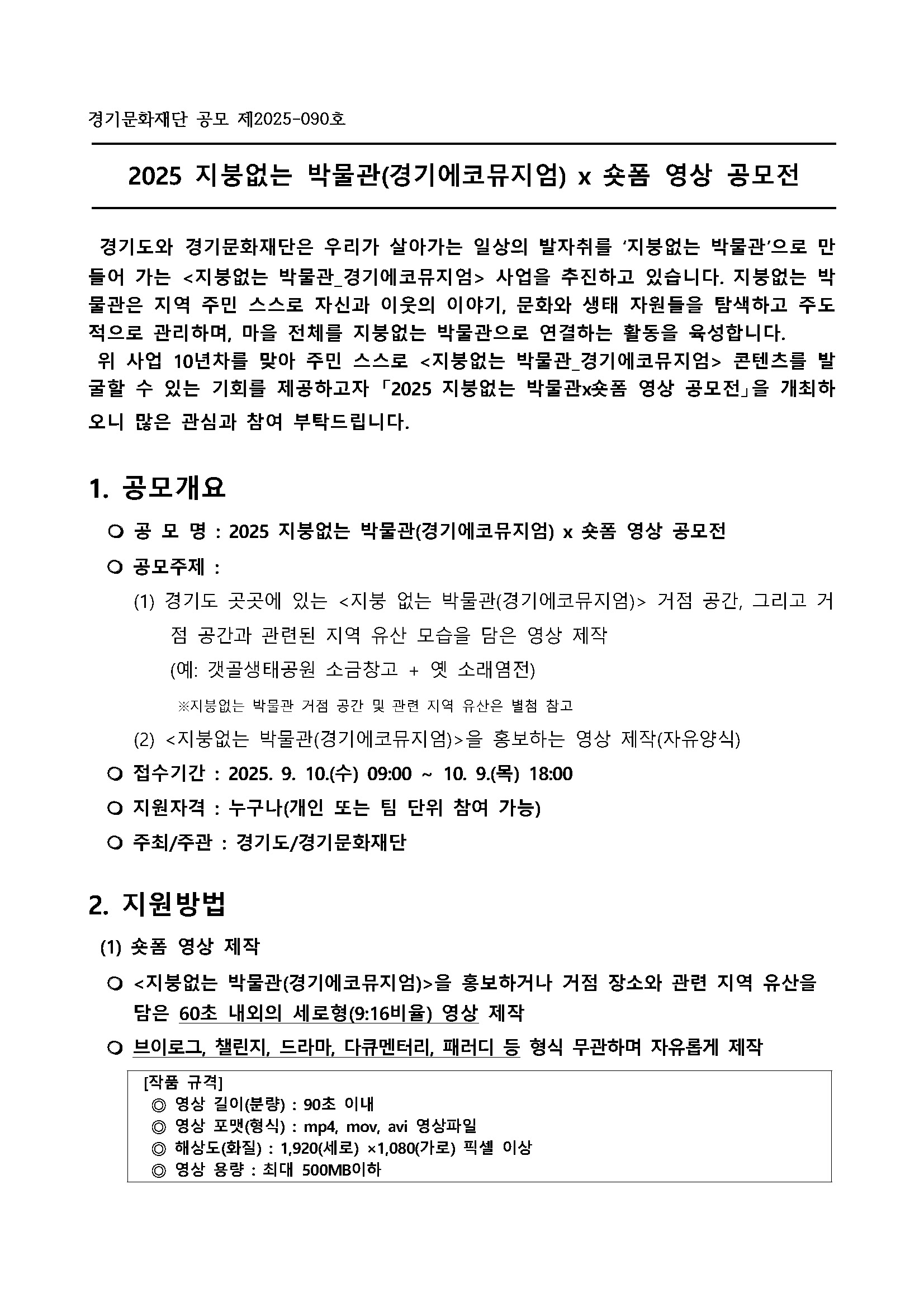 2025 지붕없는 박물관(경기에코뮤지엄) x 숏폼 영상 공모전