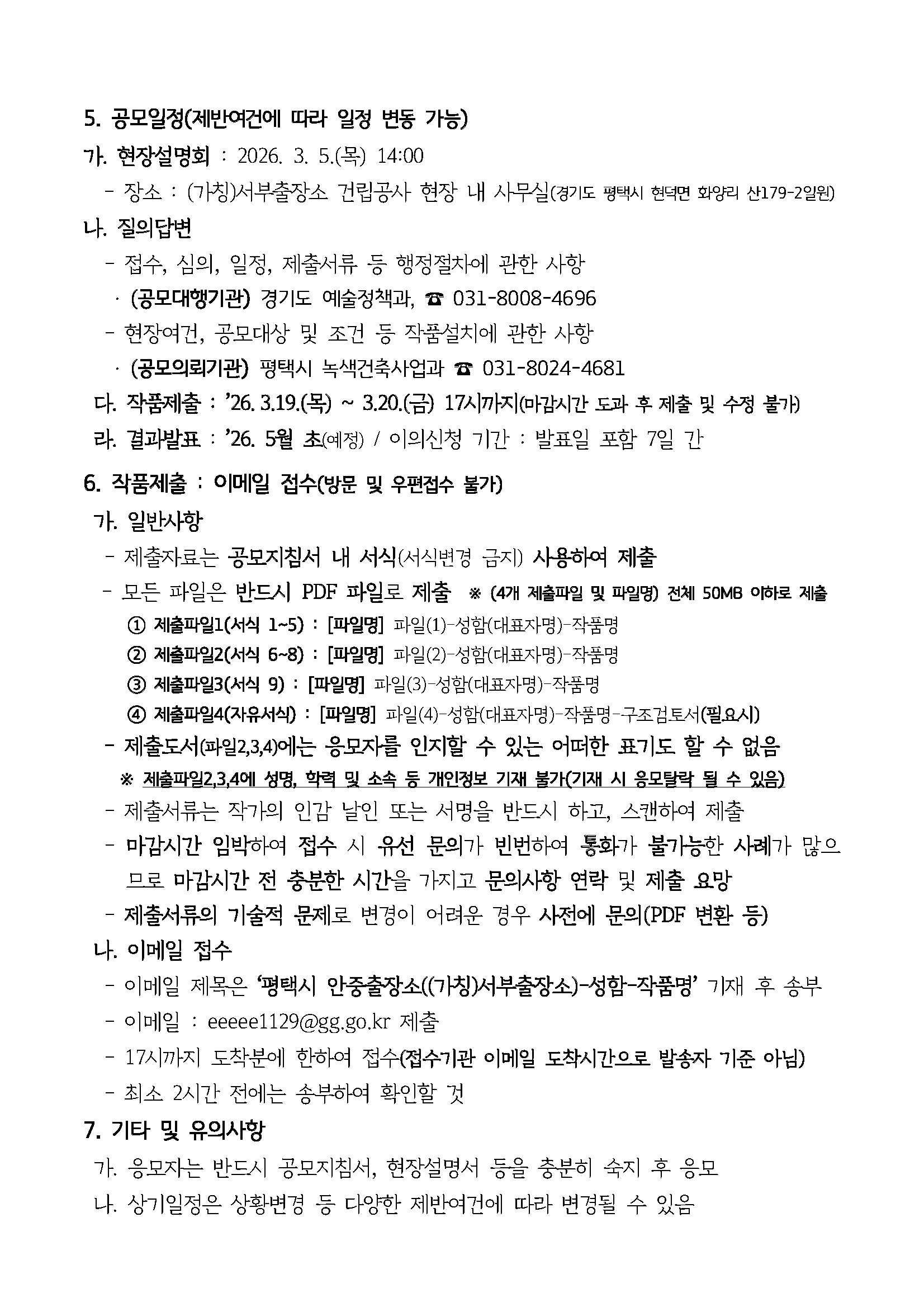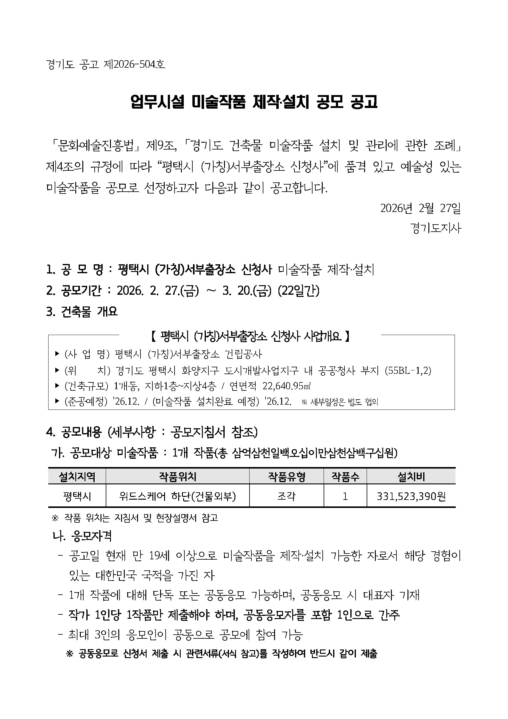 평택시 (가칭)서부출장소 신청사 미술작품 제작·설치 공모 공고
