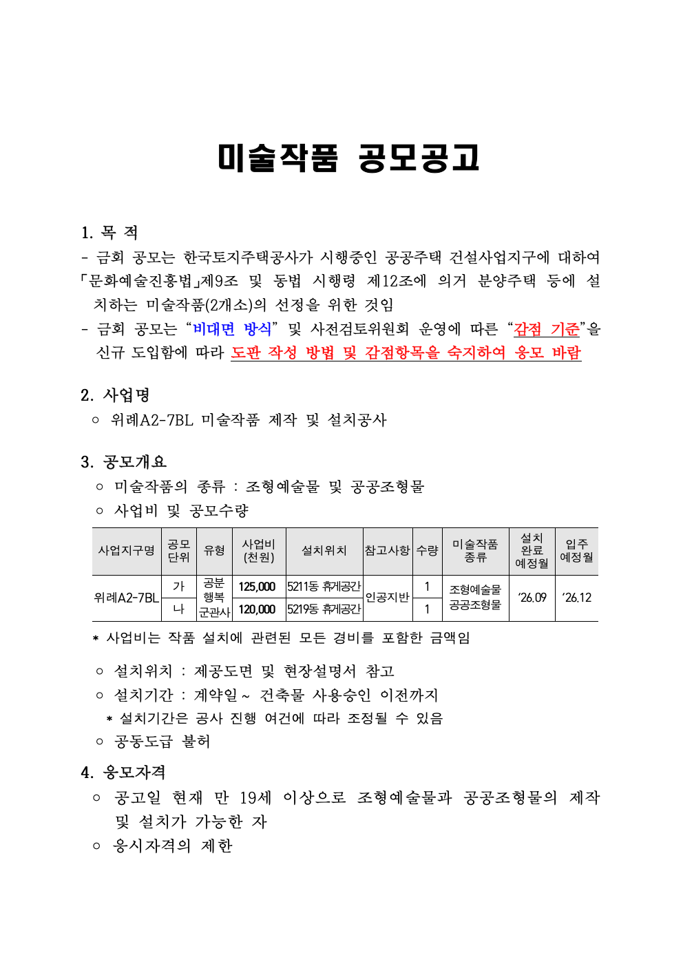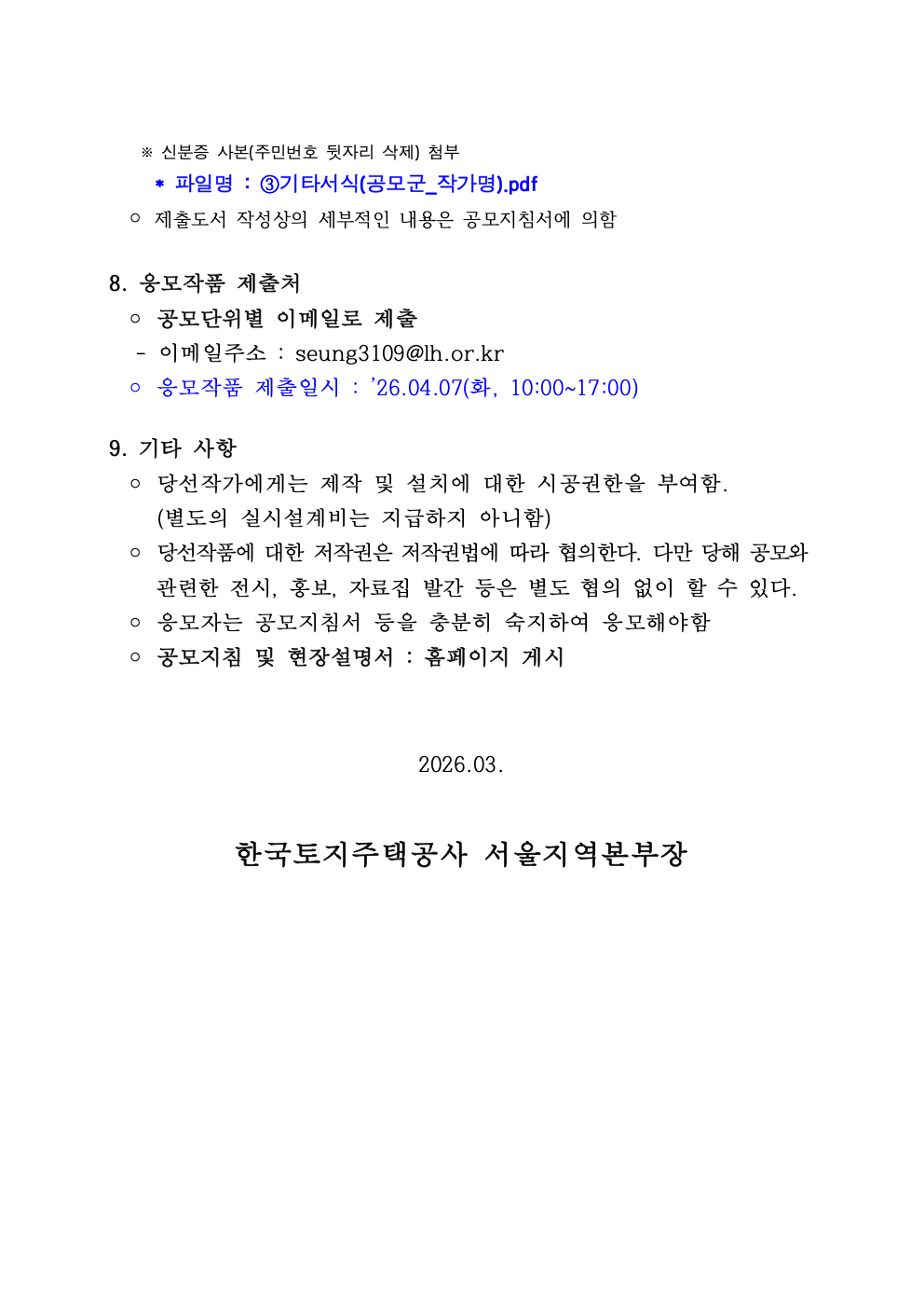2026 LH 서울지역본부 공동주택 미술작품 제작 및 설치 공모 공고