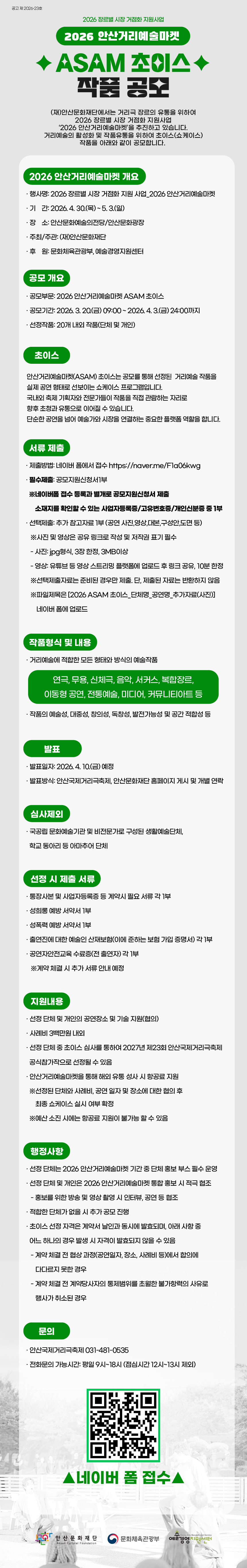 2026 안산거리예술마켓_ASAM 초이스 작품 공모