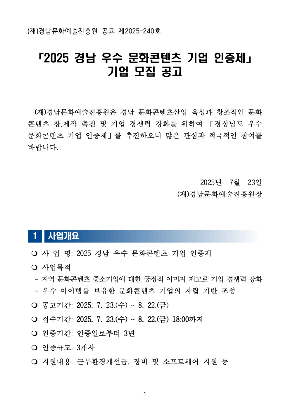 20250723054211_[붙임1] 2025 경남 우수 문화콘텐츠 기업 인증제 기업 모집 공고문.hwp