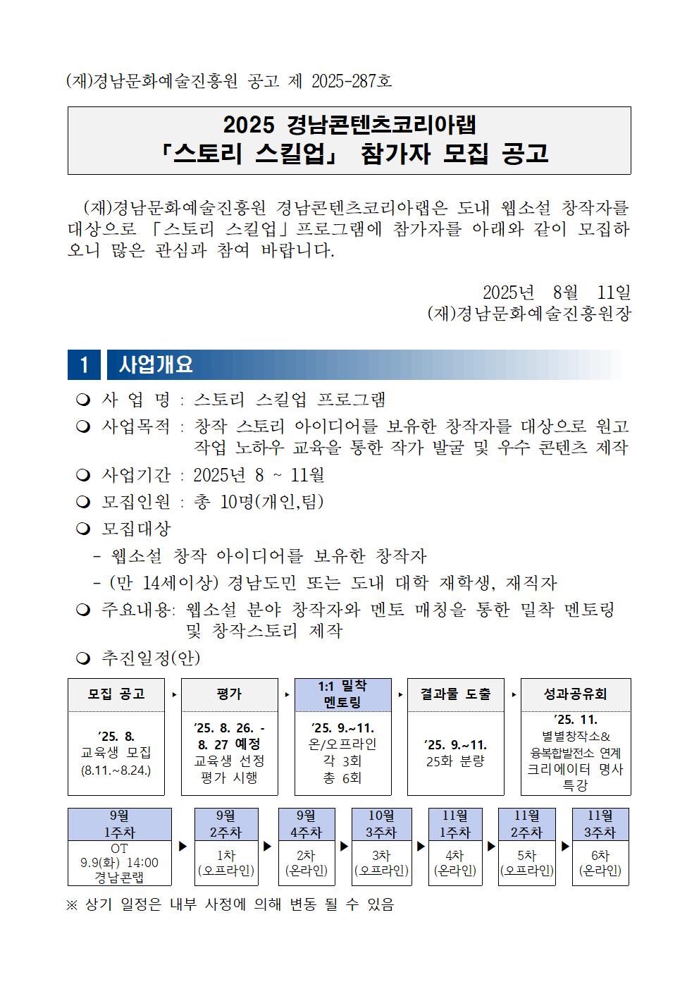 20250811062212_[붙임1] 2025 경남콘텐츠코리아랩 「스토리 스킬업」프로그램 참가자 모집 공고문.hwp