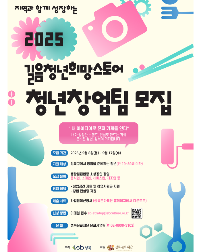 - 지원점포 : 서울특별시 성북구 삼양로 54 (성북구 길음청년창업거리)