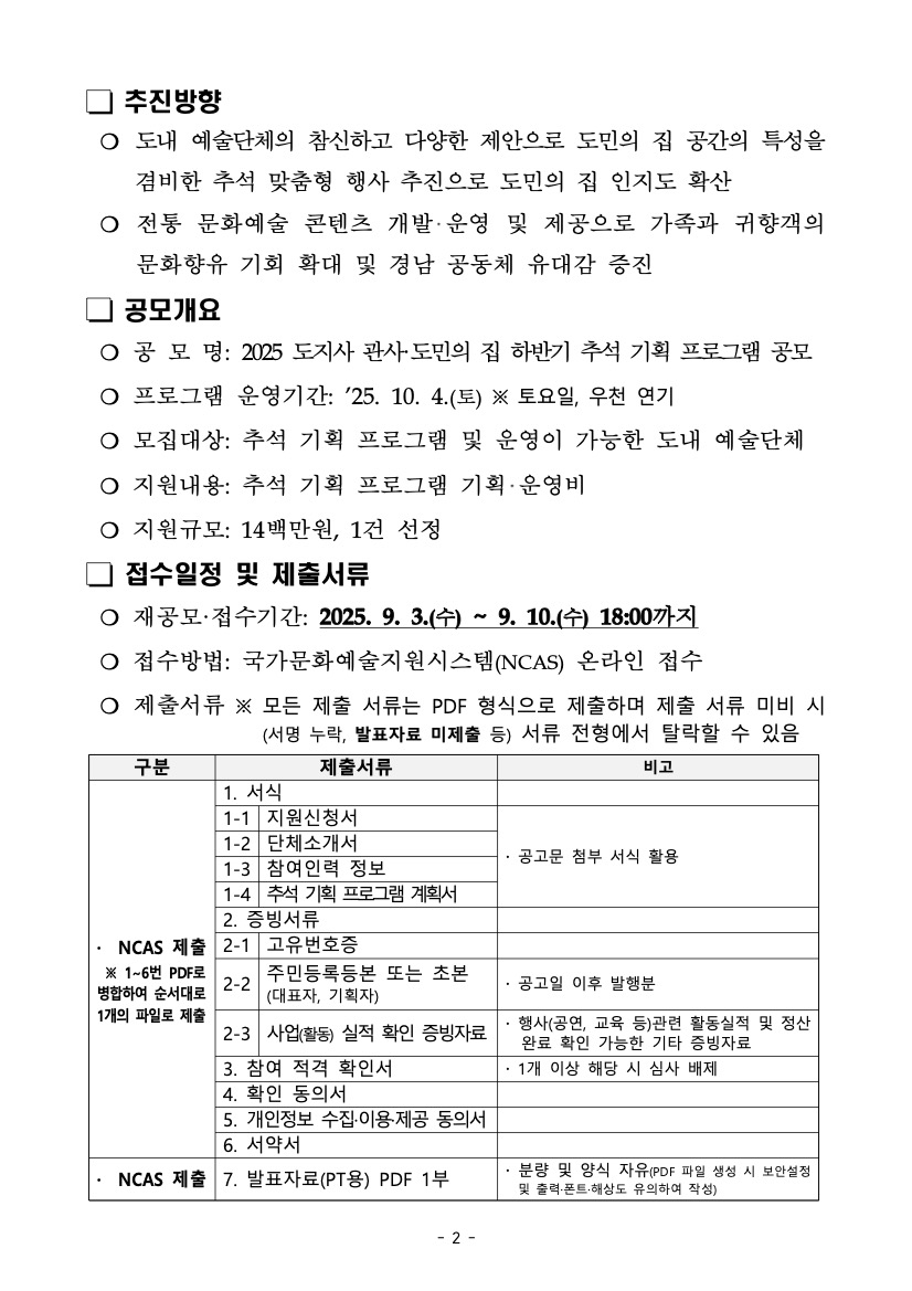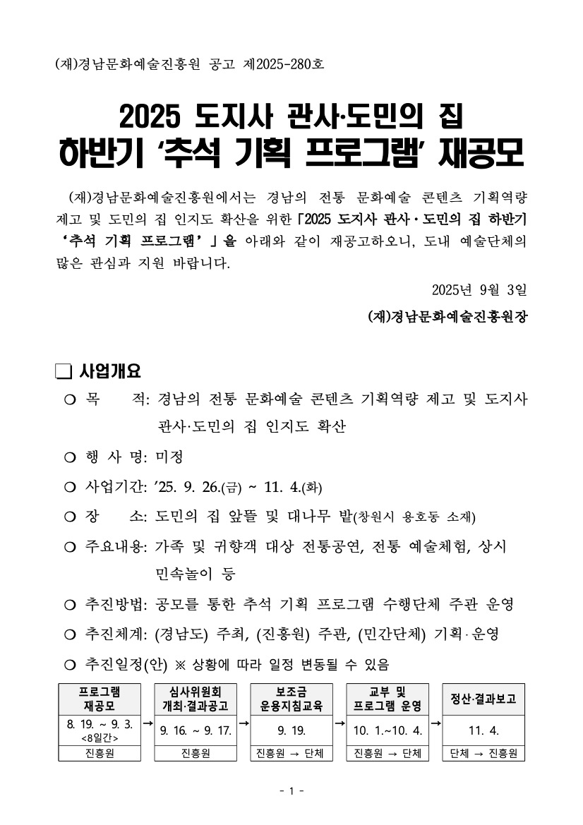 2025 도지사 관사·도민의 집 하반기 추석 기획 프로그램 재공모