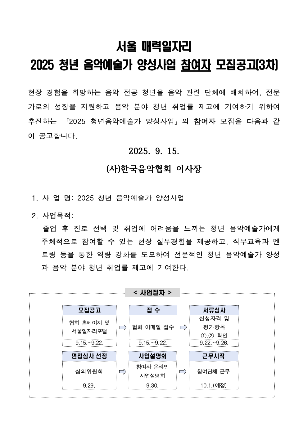 20250918055315_서울_매력일자리_2025_청년_음악예술가_양성사업_참여자_공고문(3차).hwp