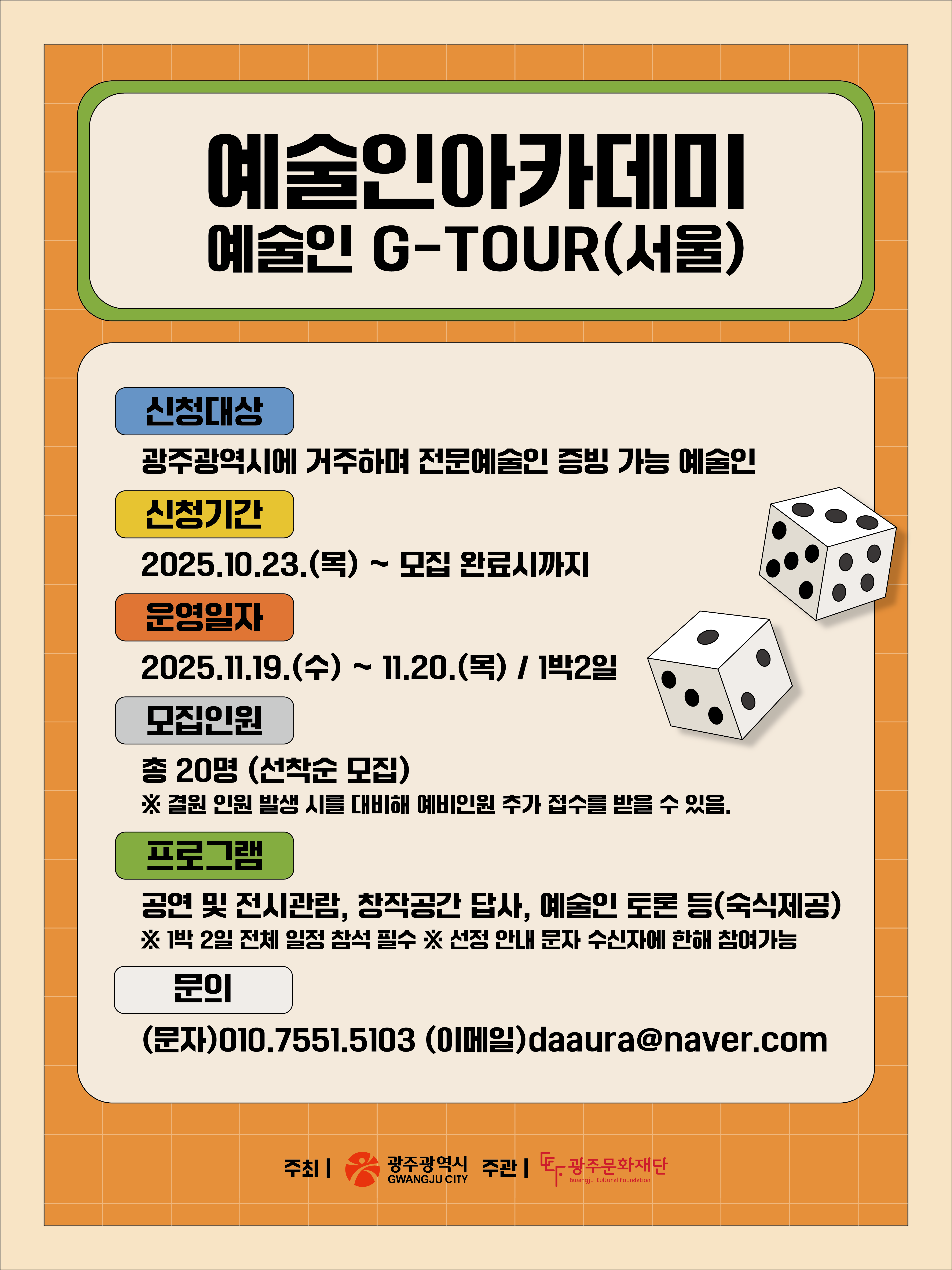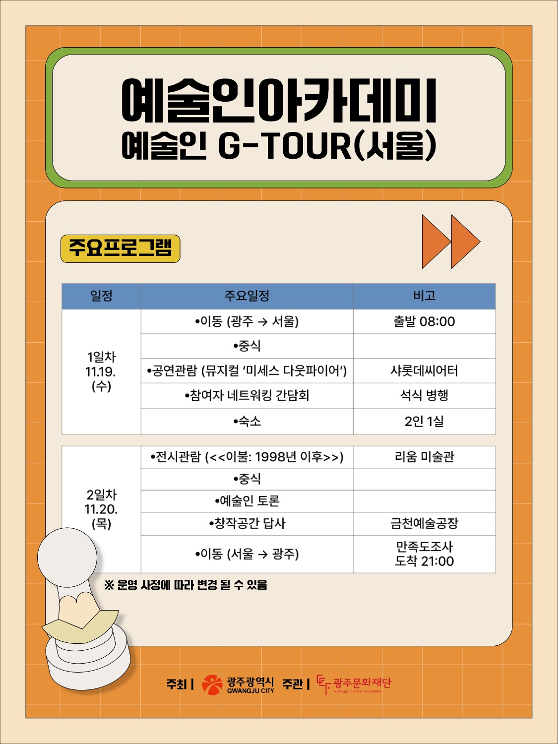 창작의 영감을 찾아 떠나는 여정, 광주예술인아카데미 예술인 G-TOUR (서울) 참여자 모집