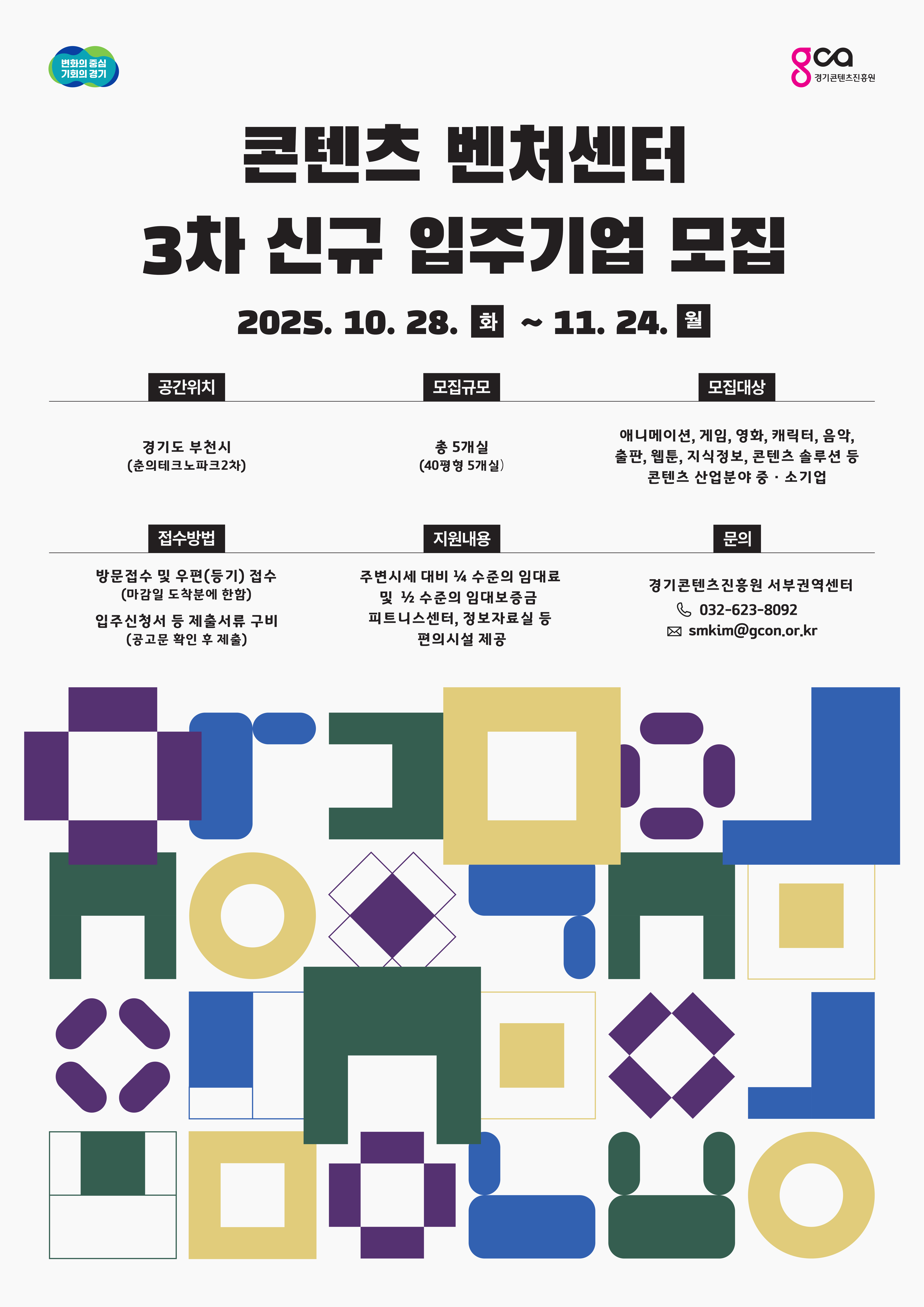 2025년 콘텐츠 벤처센터 3차 신규 입주기업 모집