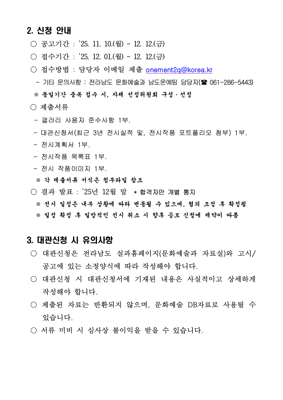 2025년 전라남도청 갤러리 대관 공모