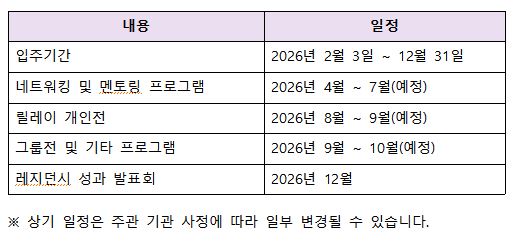 ○ 입주기간: 2026년 2월 3일(화) ~ 12월 31일(목) (총 10개월)