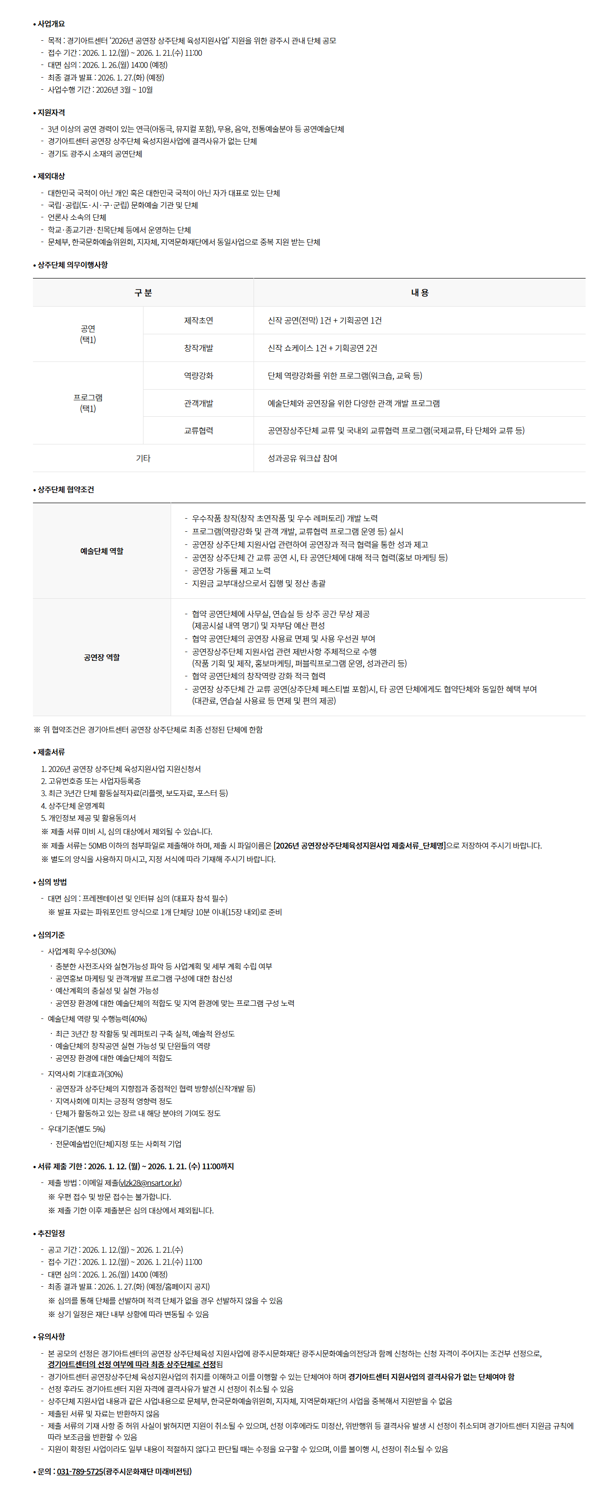 [2026 지역 예술단체 공유사무실] 예술단체 모집 공고
