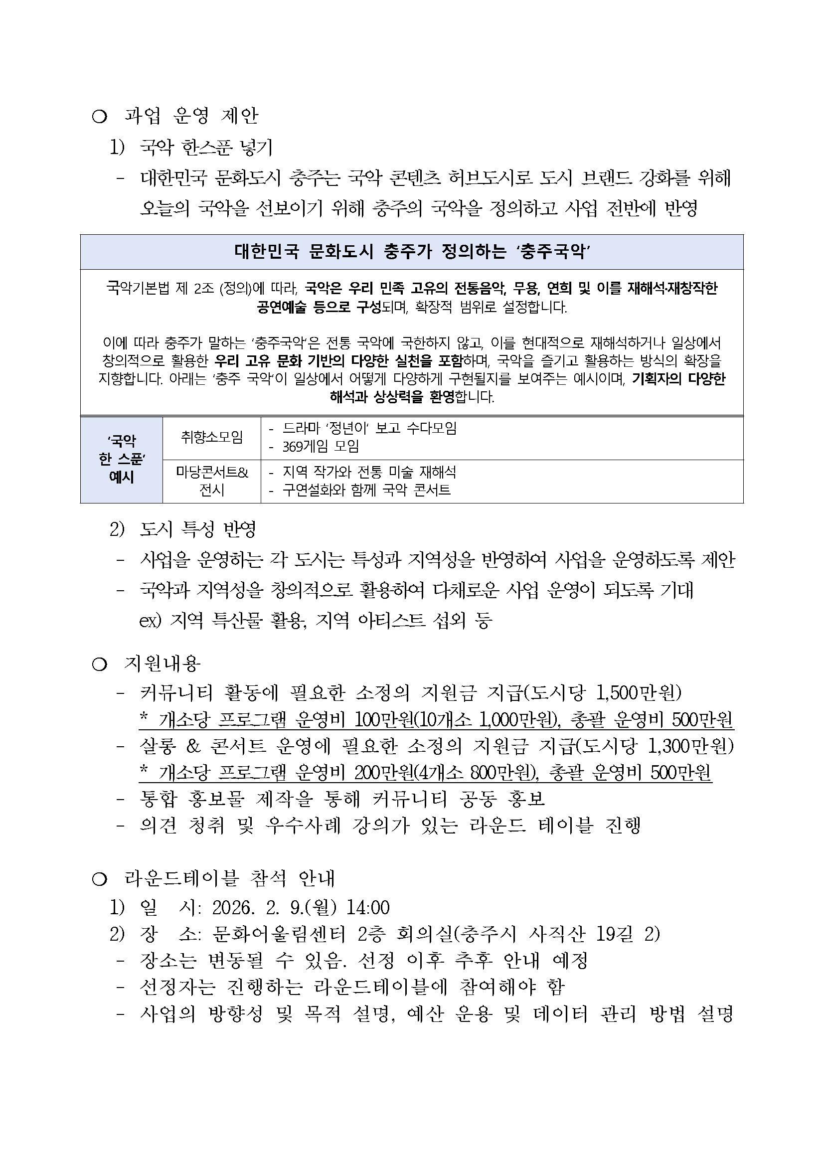 2025 대한민국 문화도시 충주 충청권 국악문화향유거점활성화 모집 공고