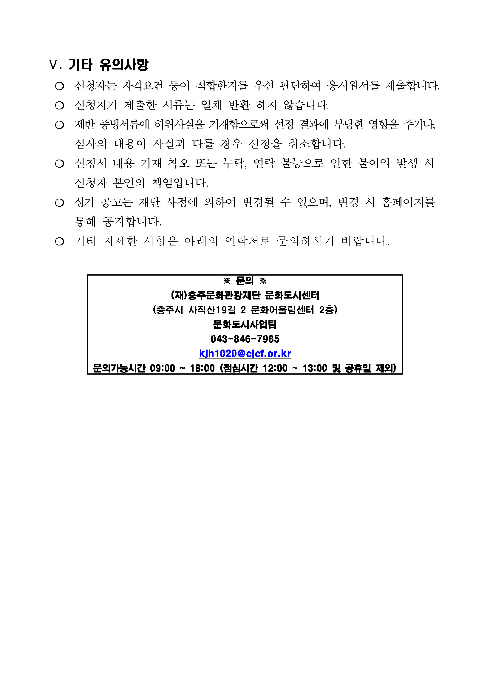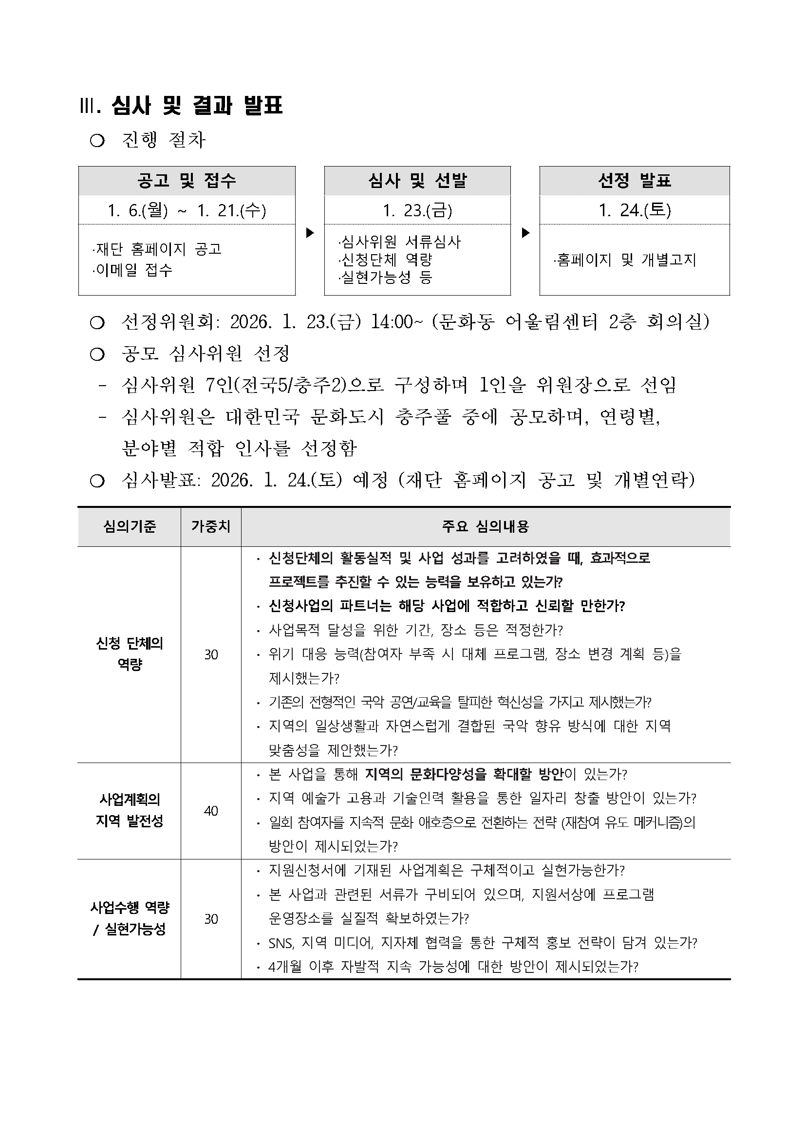 2026년 충북문화재단 문화예술지원사업 공모(1차)