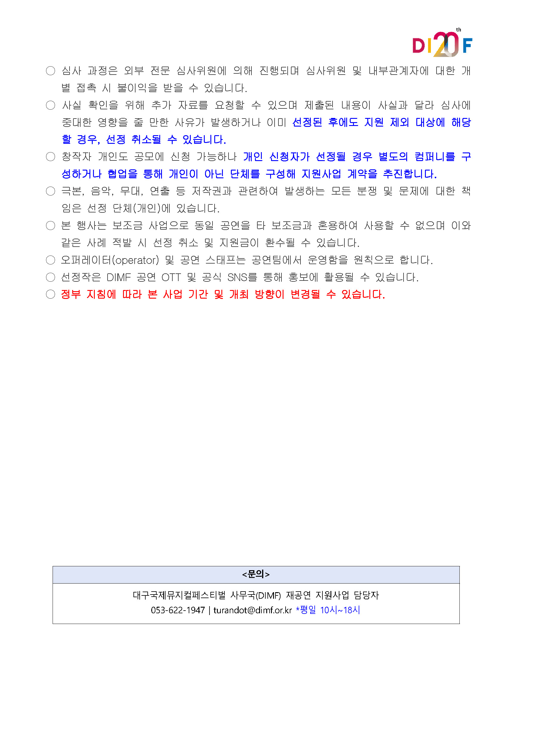 제20회 대구국제뮤지컬페스티벌(DIMF) 재공연지원사업 공모