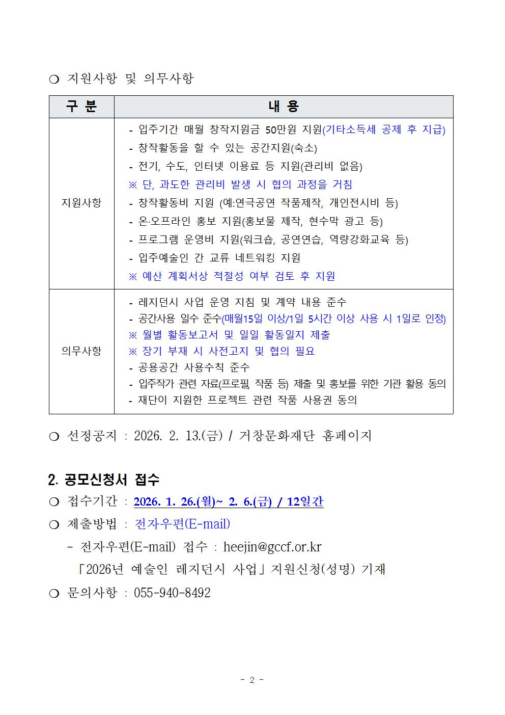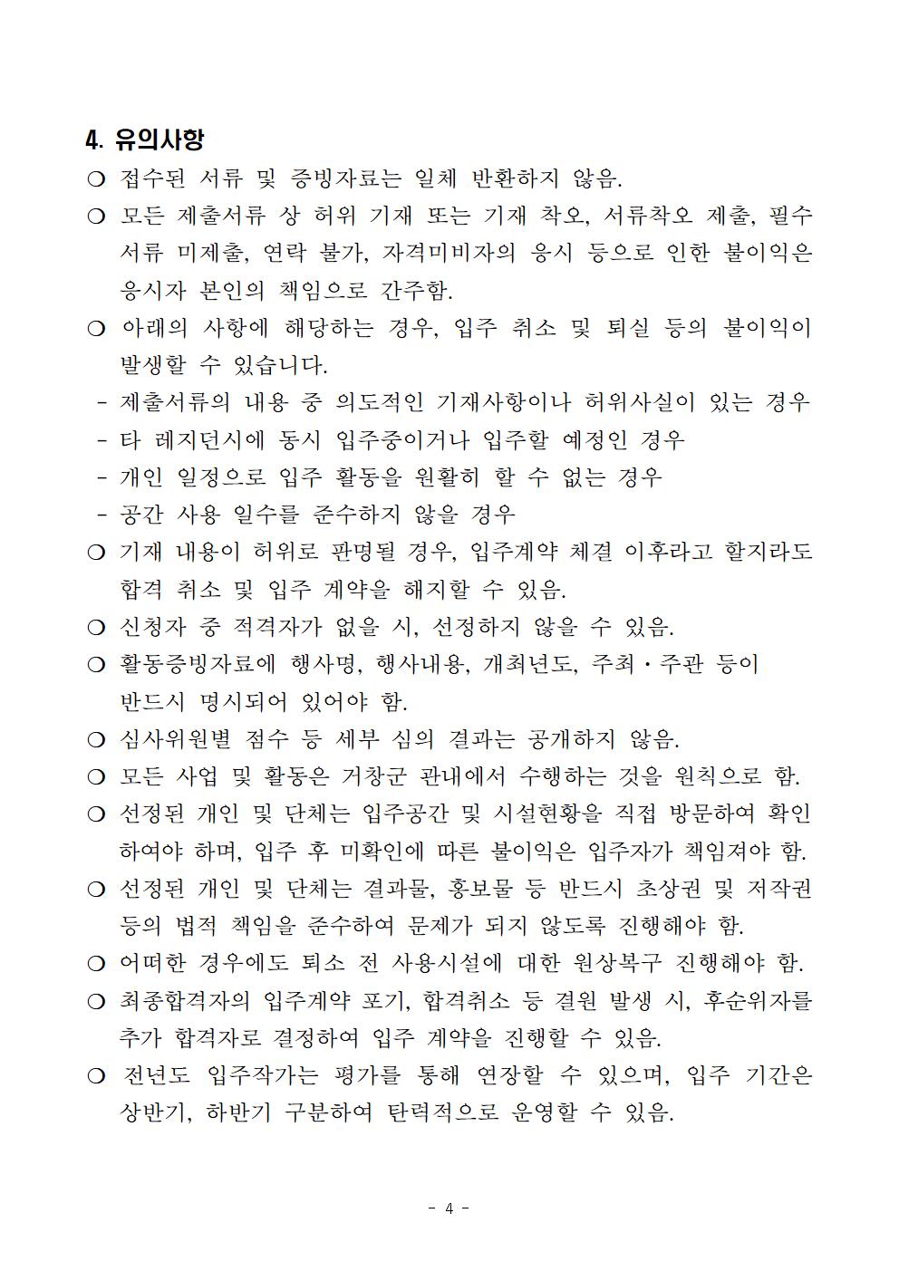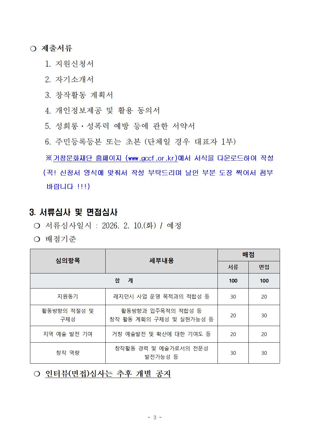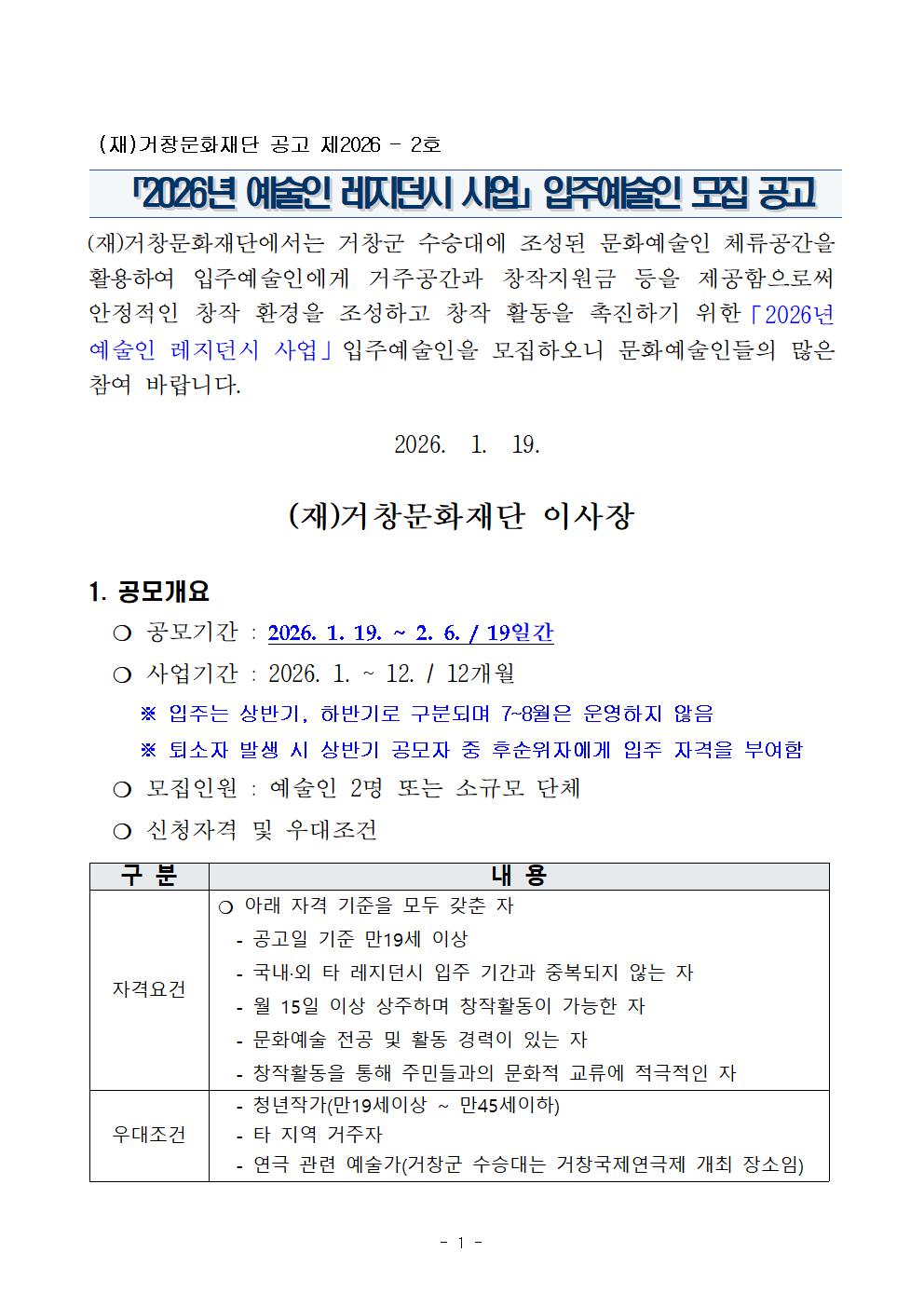 2026년 예술인 레지던시 사업 입주예술인 모집 공고