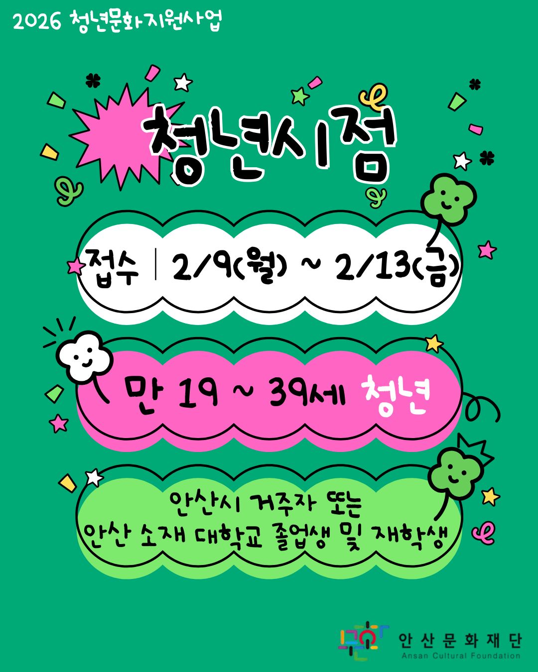 [회원등록공고] [안산문화재단] 2026 청년문화지원사업 <청년시점> 전시/공연 청년예술인 모집