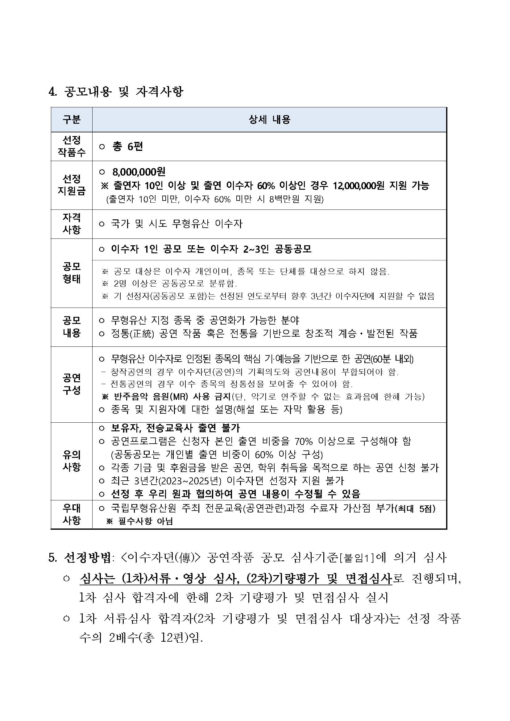 2026 이수자뎐(傳) 공연작품 공모 공고