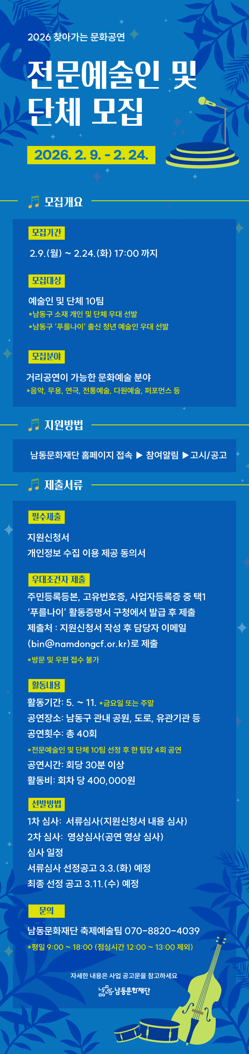 2026년 남동구 문화예술활동 지원사업 'ART-UP 남동' 모집
