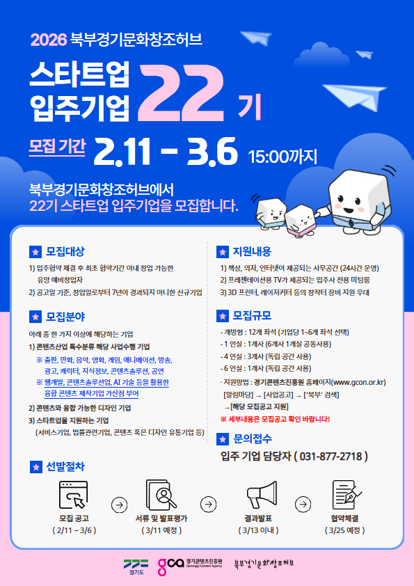 2026 북부 경기문화창조허브 스타트업 입주사 22기 모집 공고