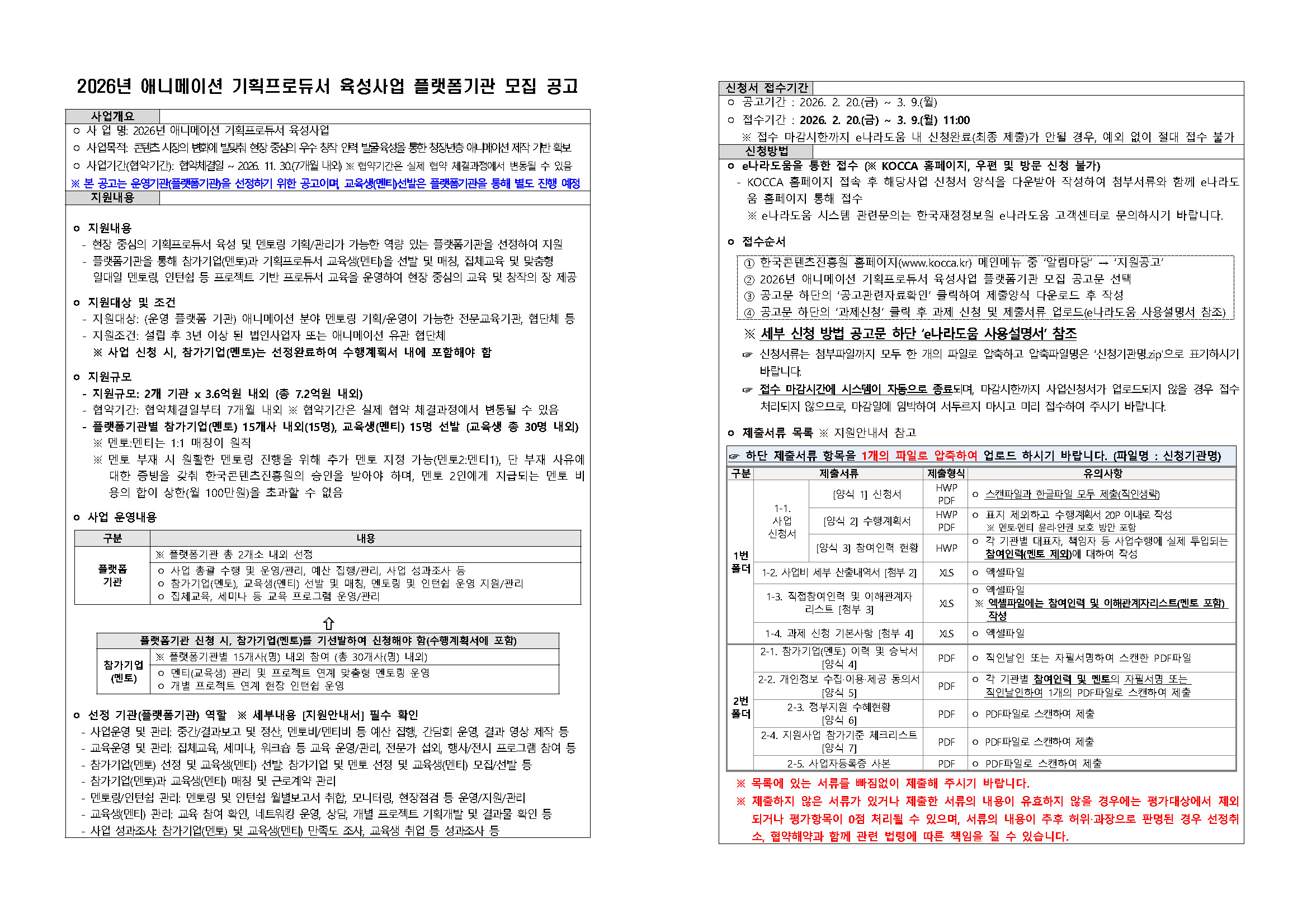 20260220101025_1. [공고문] 2026년 애니메이션 기획 프로듀서 육성사업 플랫폼기관 모집 공고.hwp