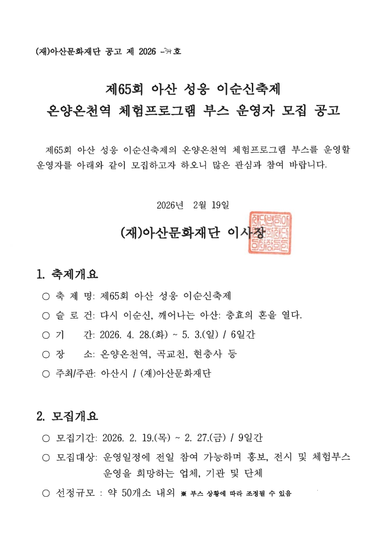 온양온천역 체험프로그램 부스 운영자 모집 공고