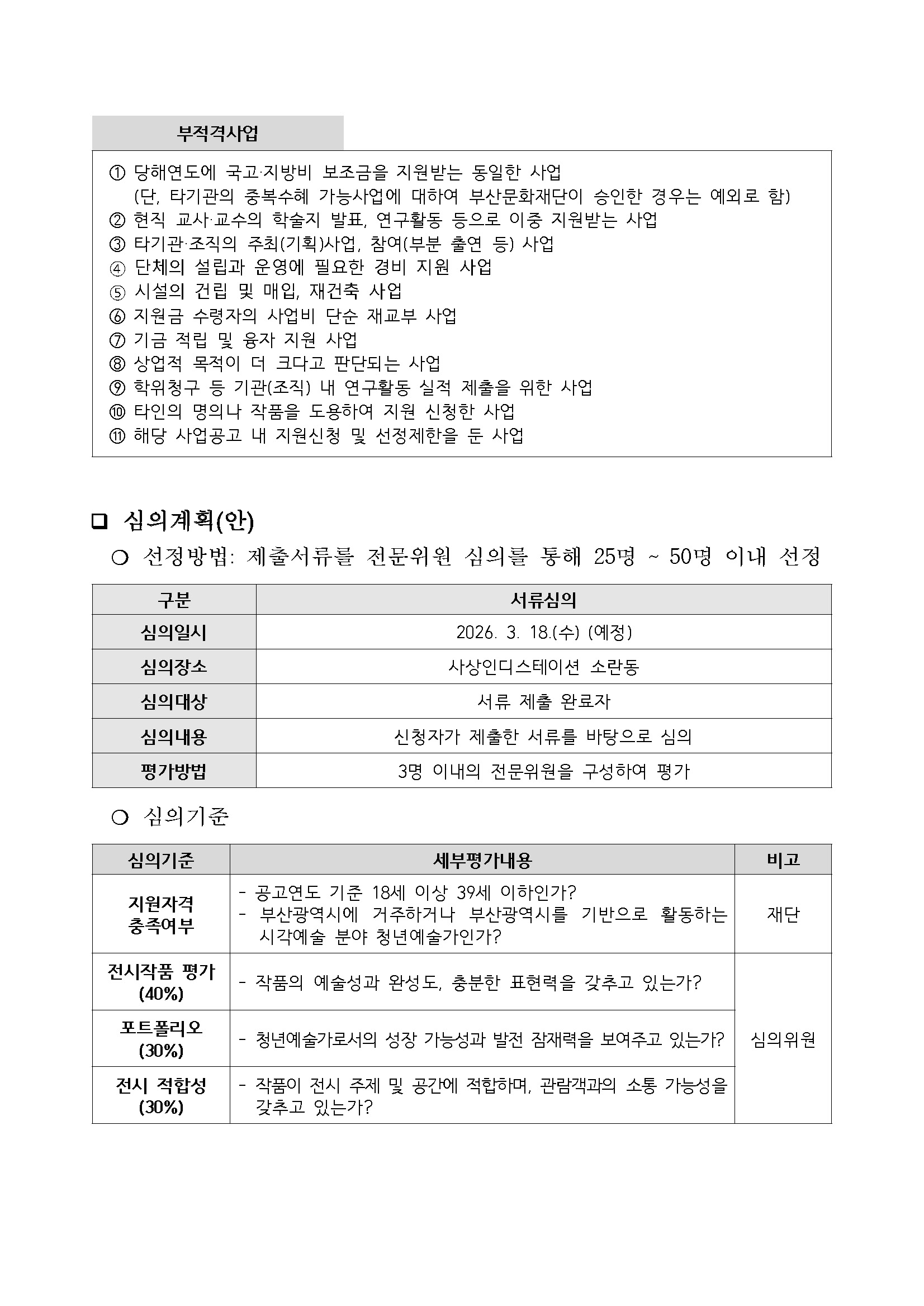2026년도 부산문화예술지원 3.0 [2차 통합 공모] - 부산문화예술지원사업, 청년문화육성지원사업